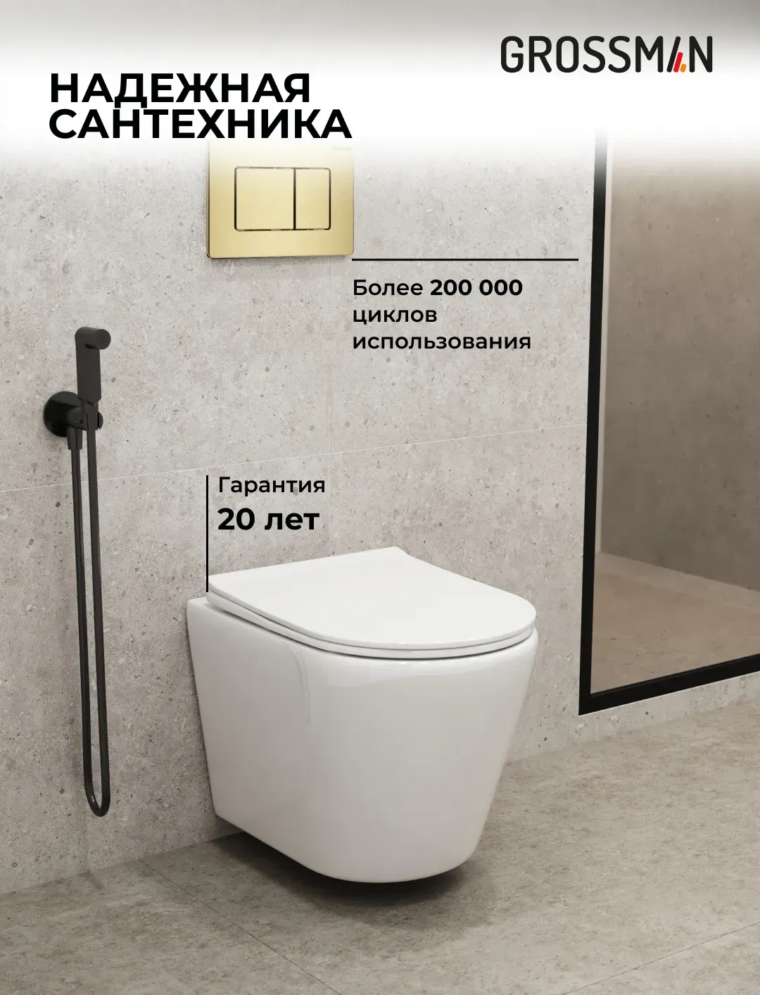 Унитаз Grossman Торнадо 97.4478SQ.04.32M с инсталляцией и золото сатиновой кнопкой смыва