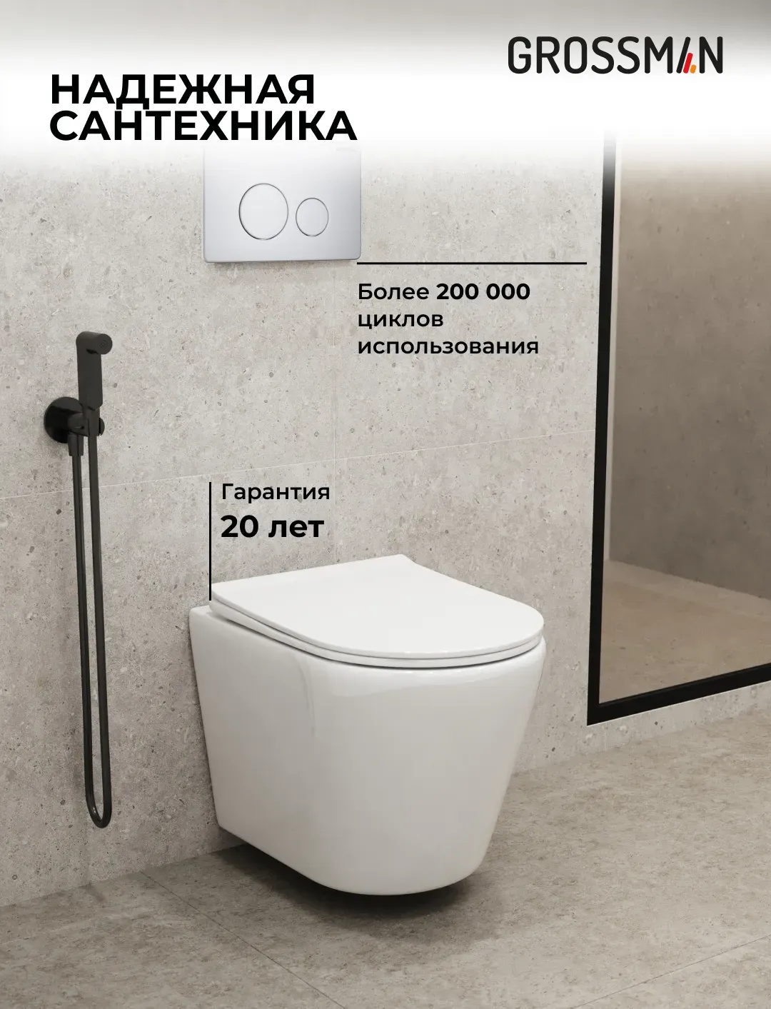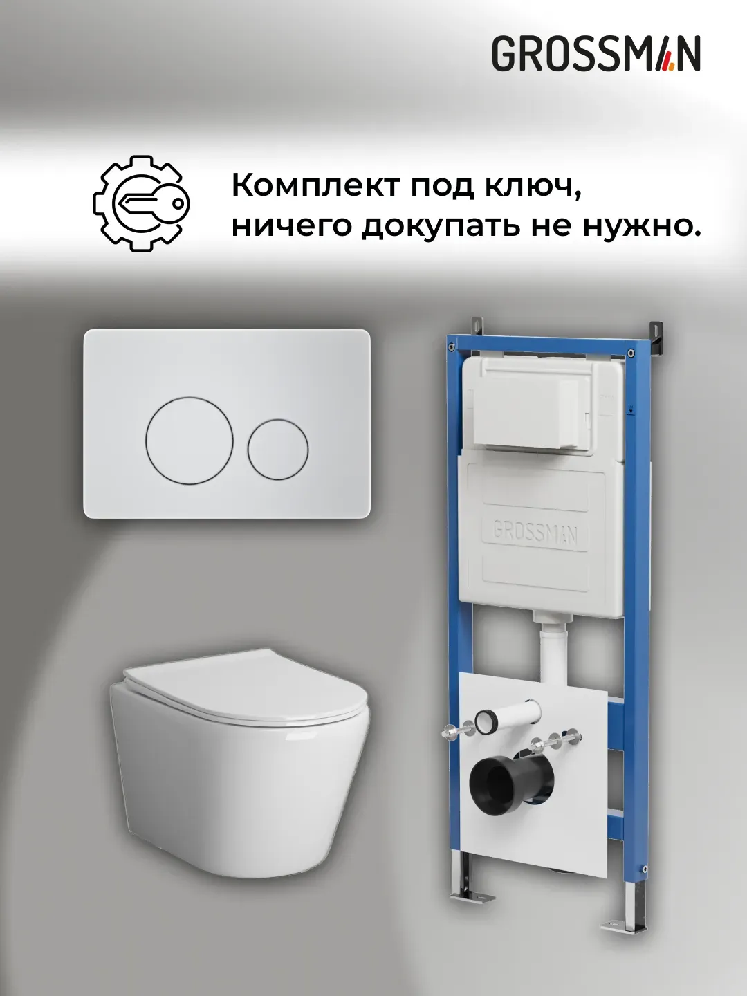 Унитаз Grossman Торнадо 97.4478SQ.05.01M с инсталляцией и белой матовой кнопкой смыва