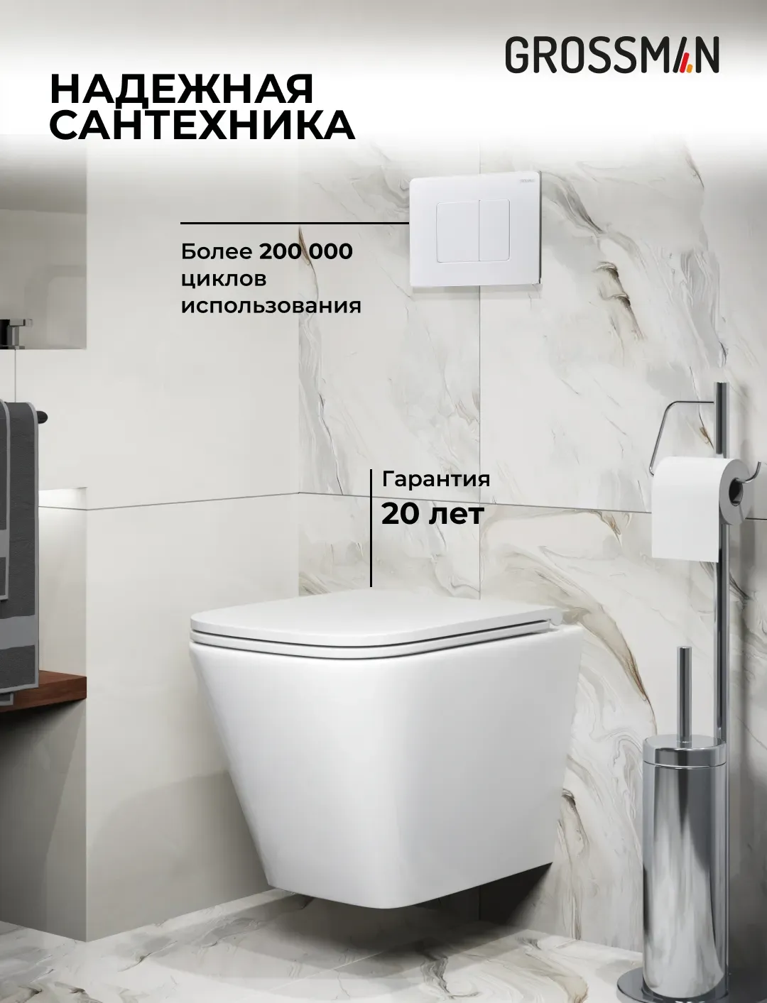 Унитаз Grossman Торнадо 97.4479SQ.04.01M с инсталляцией и белой матовой кнопкой смыва