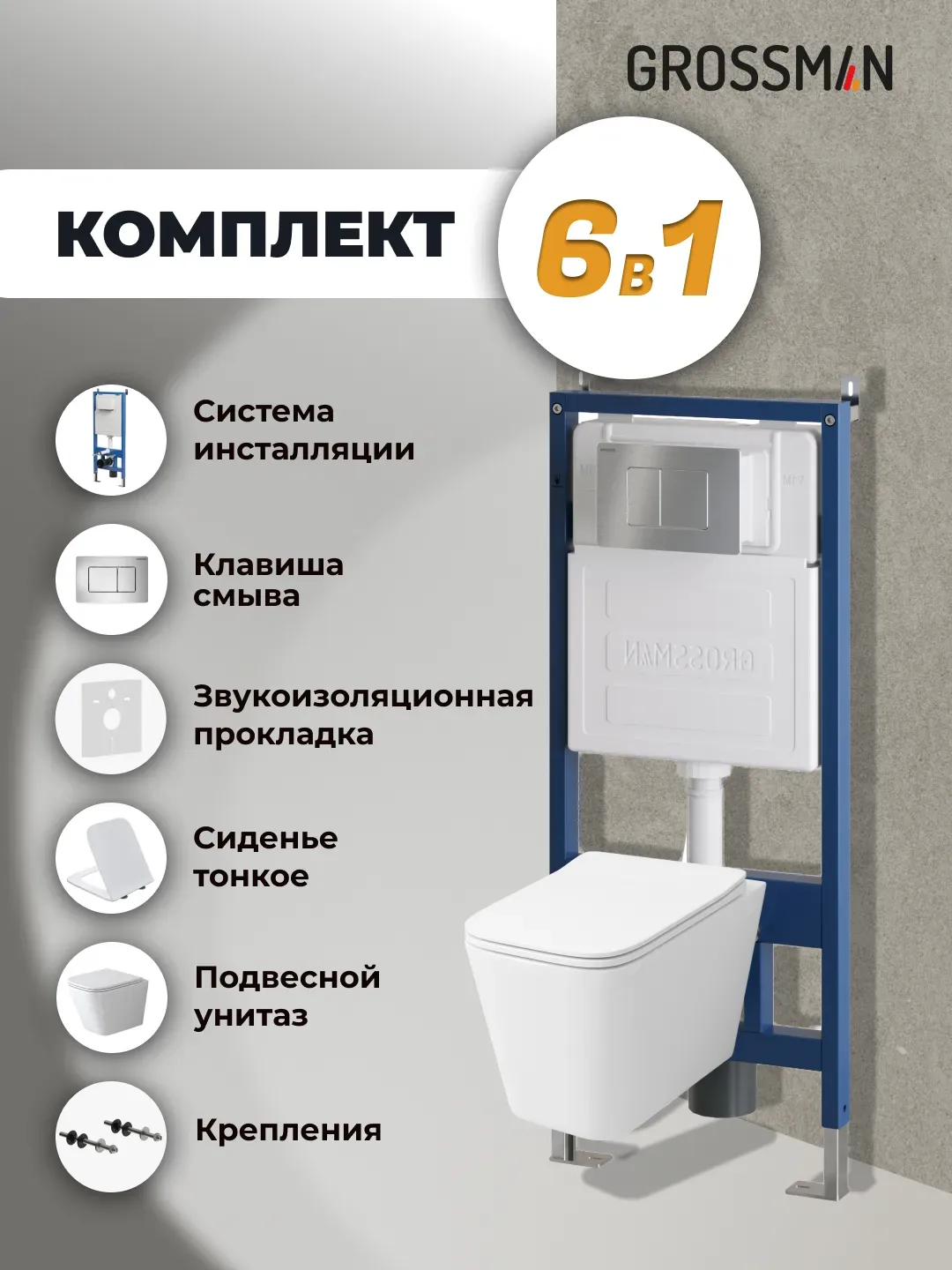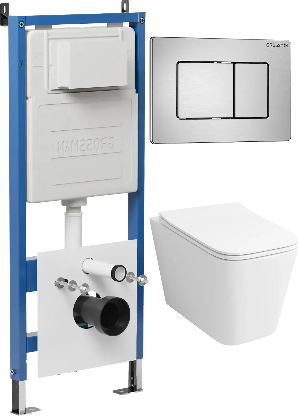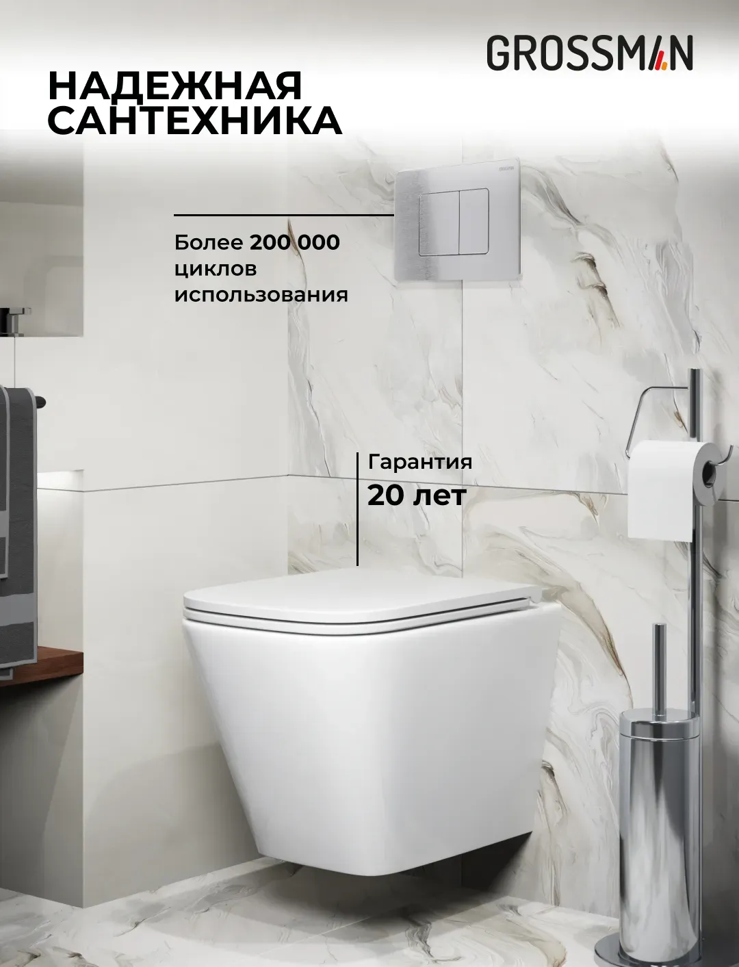 Унитаз Grossman Торнадо 97.4479SQ.04.12M с инсталляцией и хром сатиновой кнопкой смыва