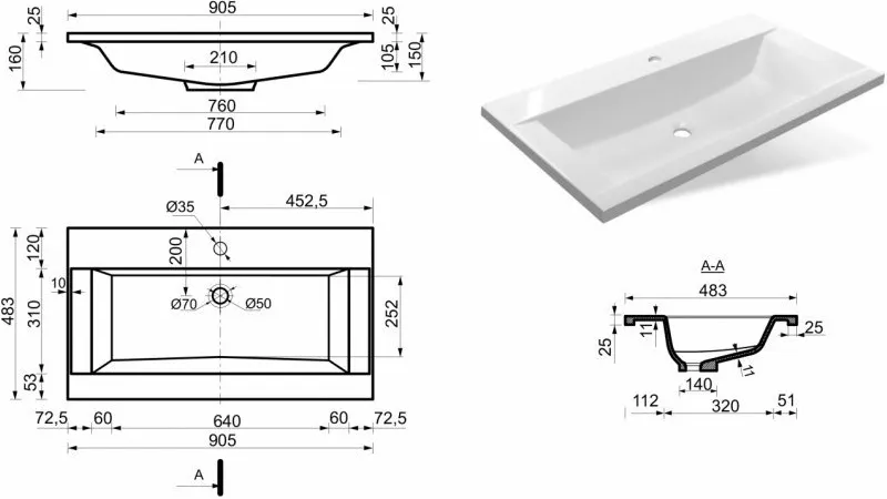| Тип раковины | Встраиваемая сверху |