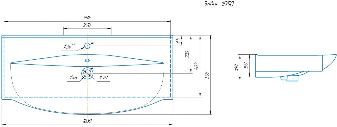 Раковина Kirovit Элвис 103 см 4640021061800