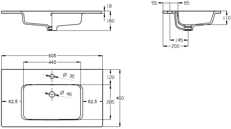 Отверстия под смеситель | 1 отверстие |