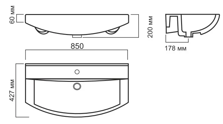 | Отверстия под смеситель | На 1 отверстие |