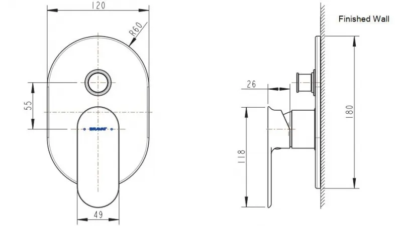 Смеситель Bravat Gina PB865104CP-2-ENG для душа встраиваемый внешняя часть
