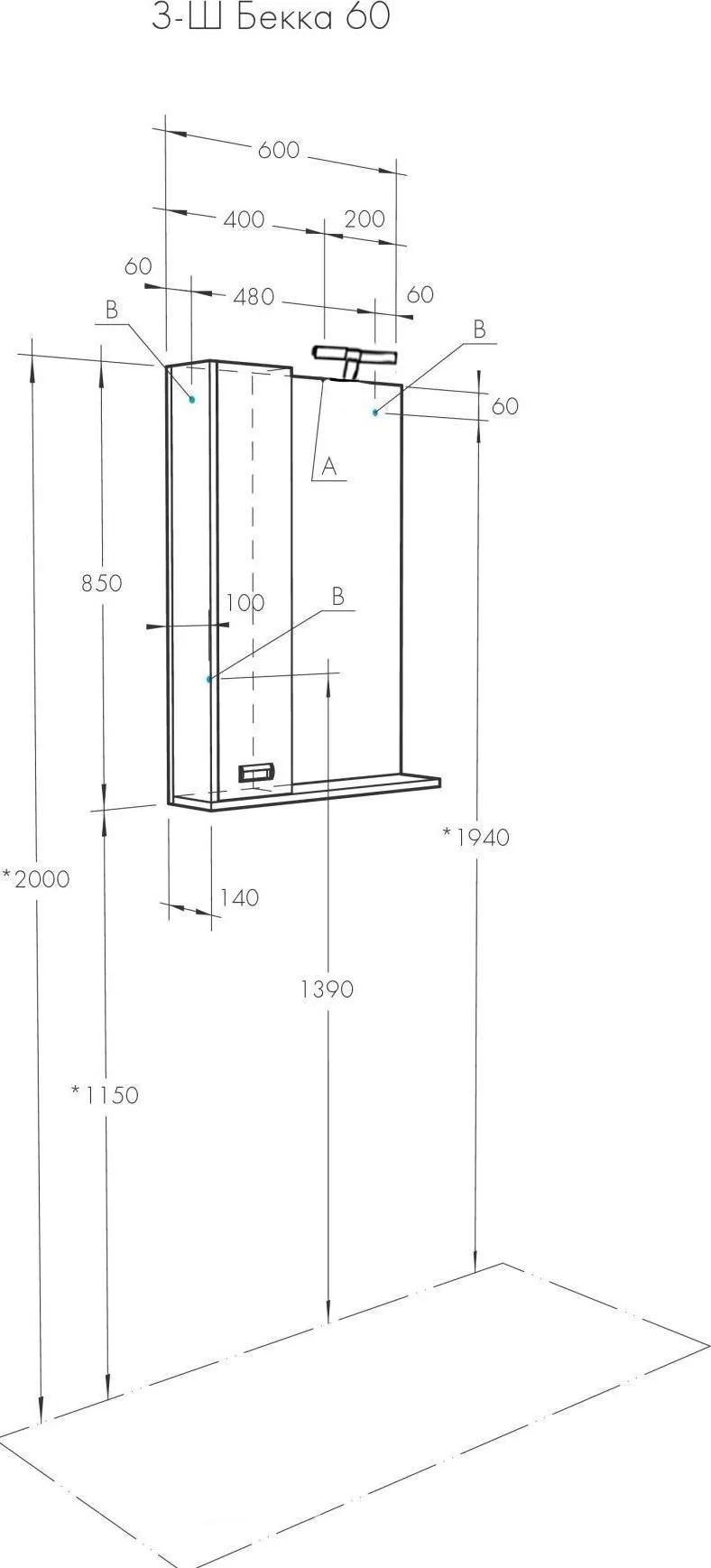 | Тип зеркала | Зеркало с полкой и шкафом |