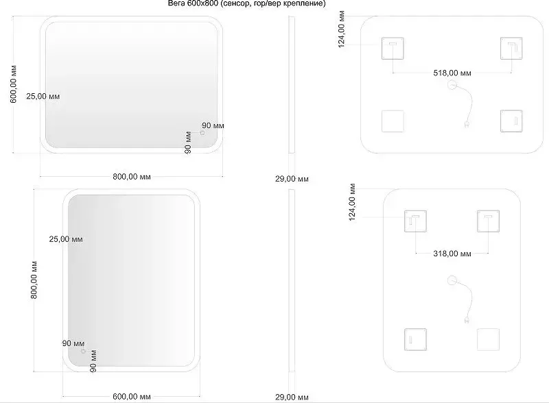 | Тип зеркала | Зеркальное полотно |
