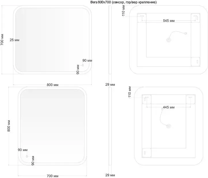 Зеркало Aquanet Вега 80x70 00330497 с подсветкой