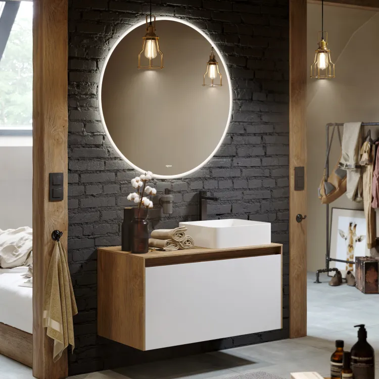 Зеркало со светодиодной подсветкой, сенсорным выключателем, регулятором освещенности и обогревом