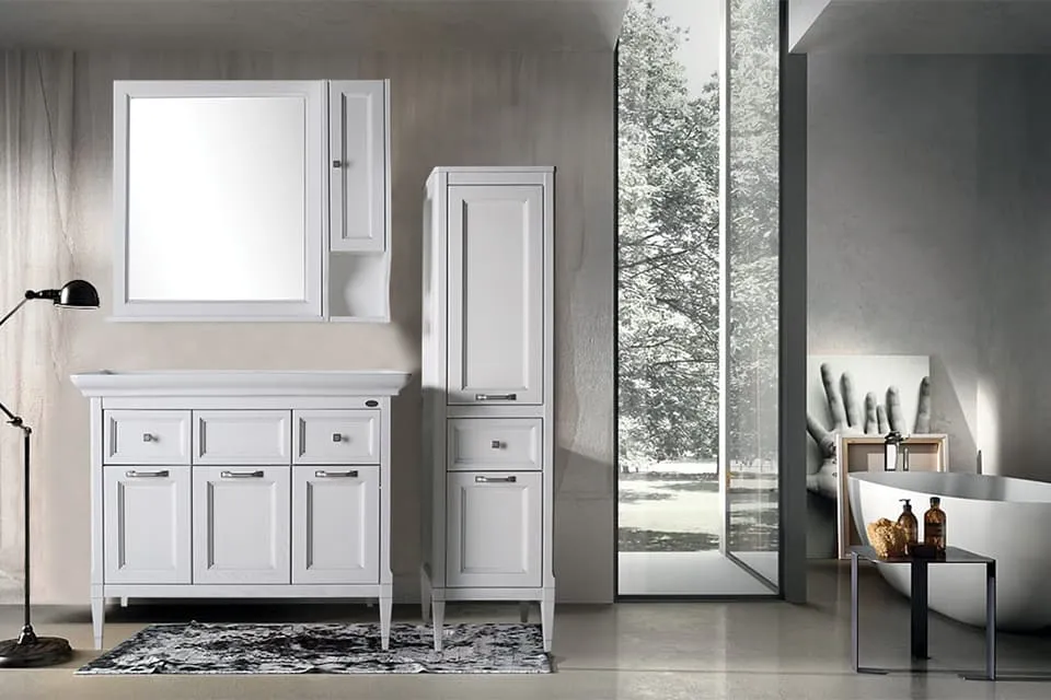 Зеркало ASB-Woodline Гранда 77x85 11481 белое патина серебро с полочкой