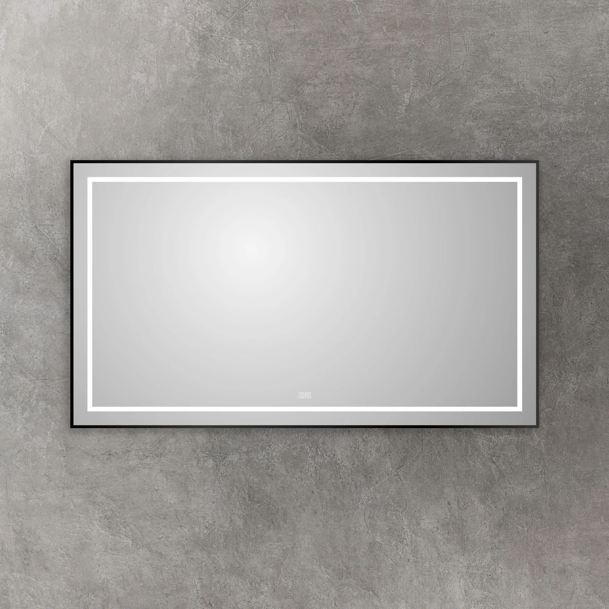 Зеркало в алюминиевой раме с встроенным светильником, сенсорным выключателем и подогревом.