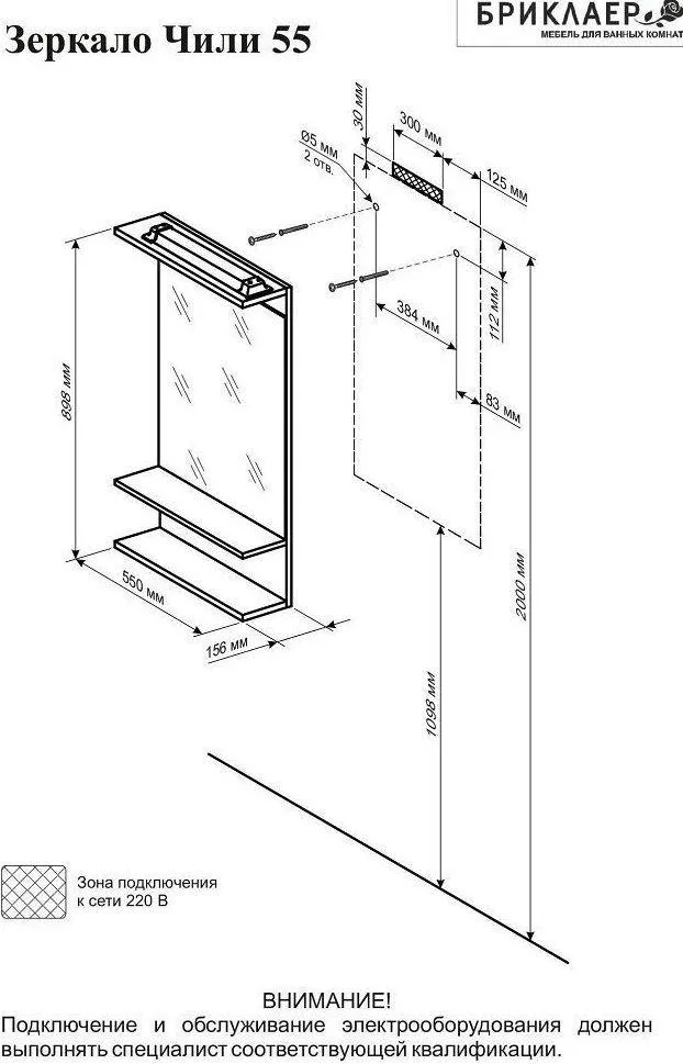 Зеркало Бриклаер Чили 55x90 4627125415159 с полочкой и подсветкой