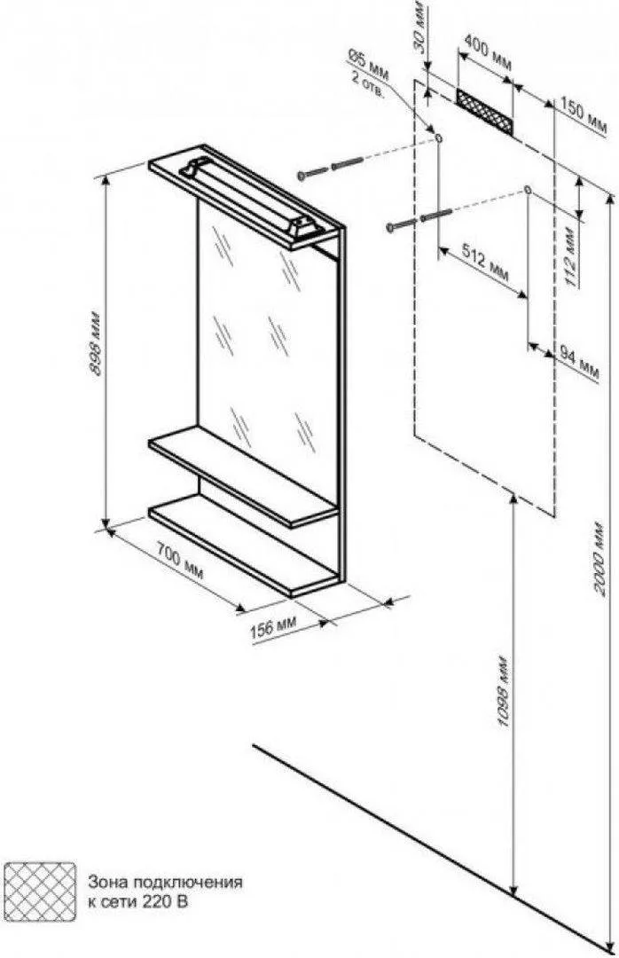 Зеркало Бриклаер Чили 70x90 4627125415050 с полочкой и подсветкой