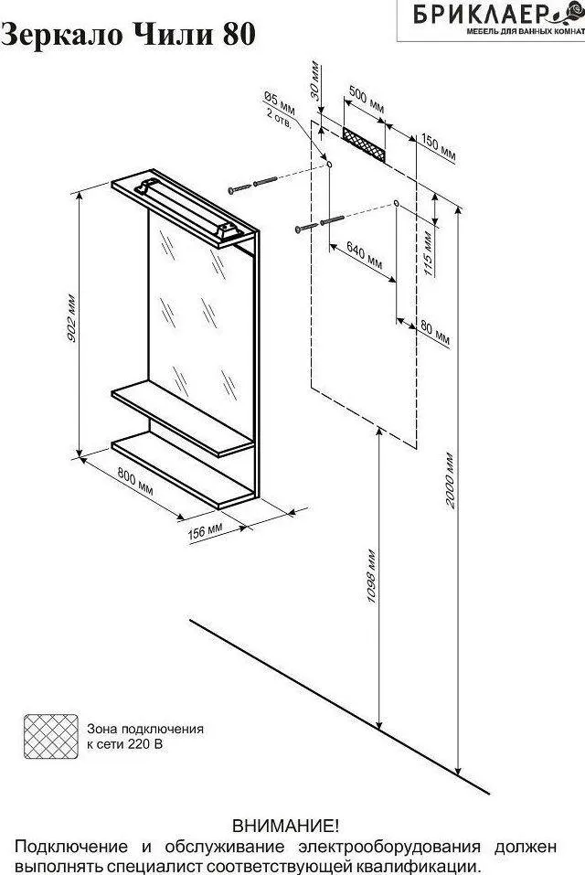 Зеркало Бриклаер Чили 80x90 4627125414954 с полочкой и подсветкой