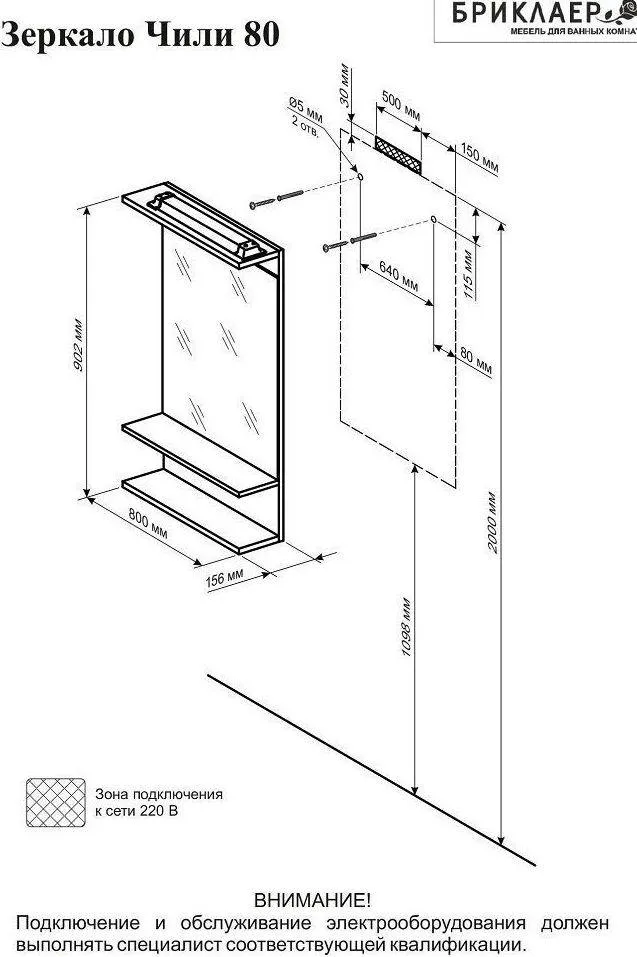 Зеркало Бриклаер Чили 80x90 4627125415067 с полочкой и подсветкой