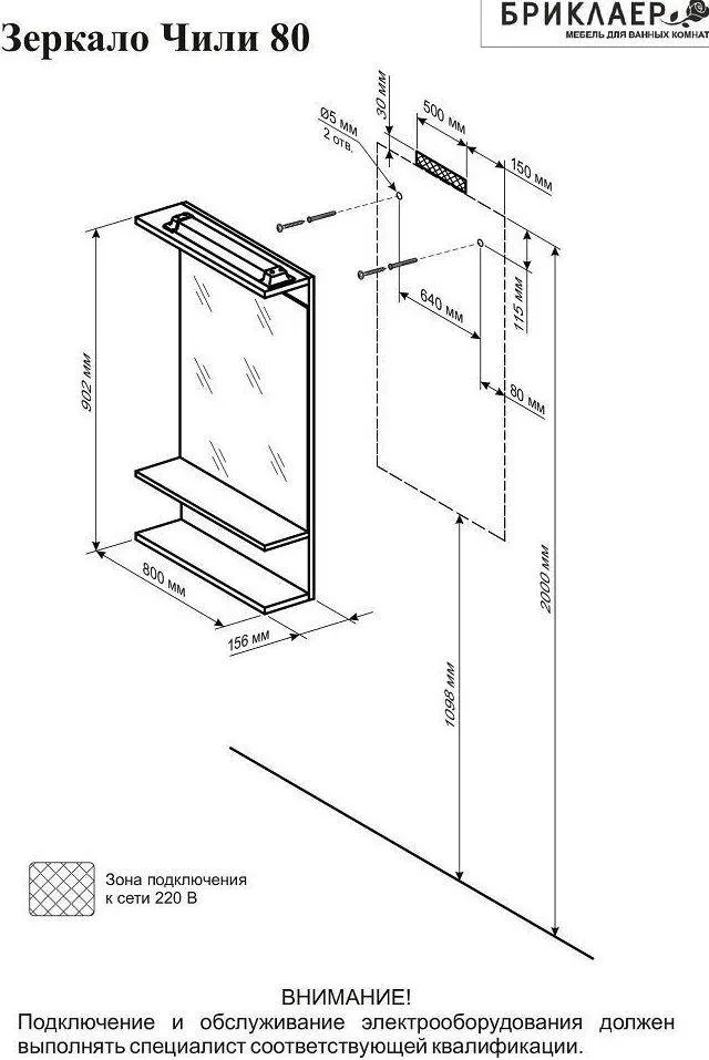 Зеркало Бриклаер Чили 80x90 4627125415173 с полочкой и подсветкой