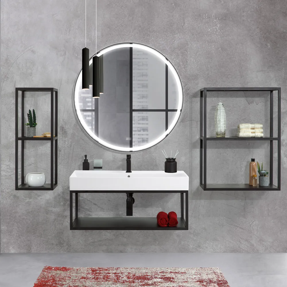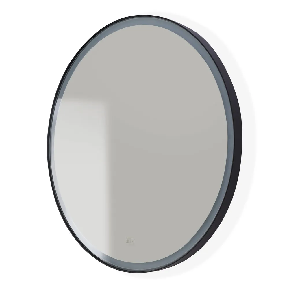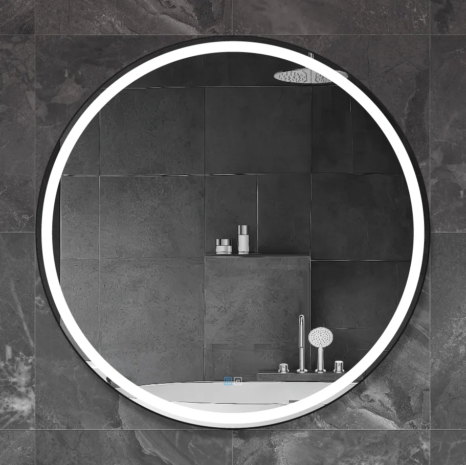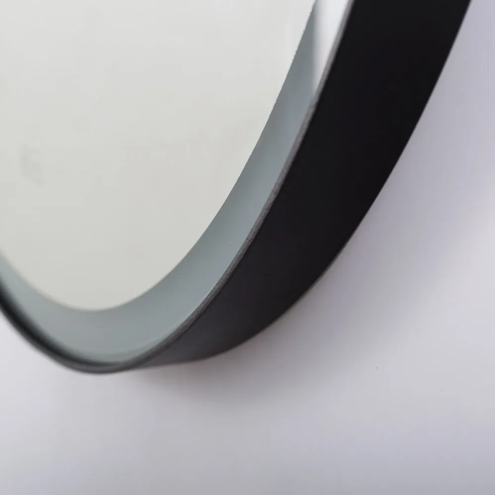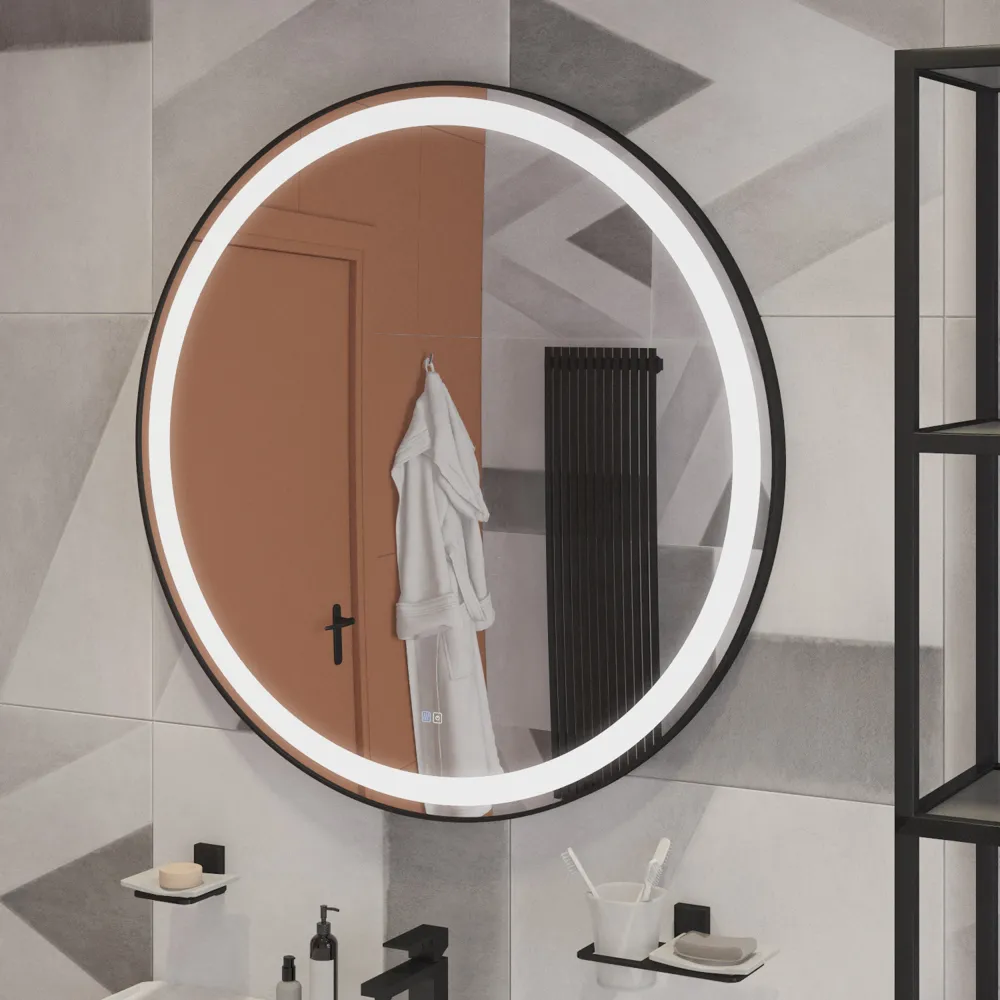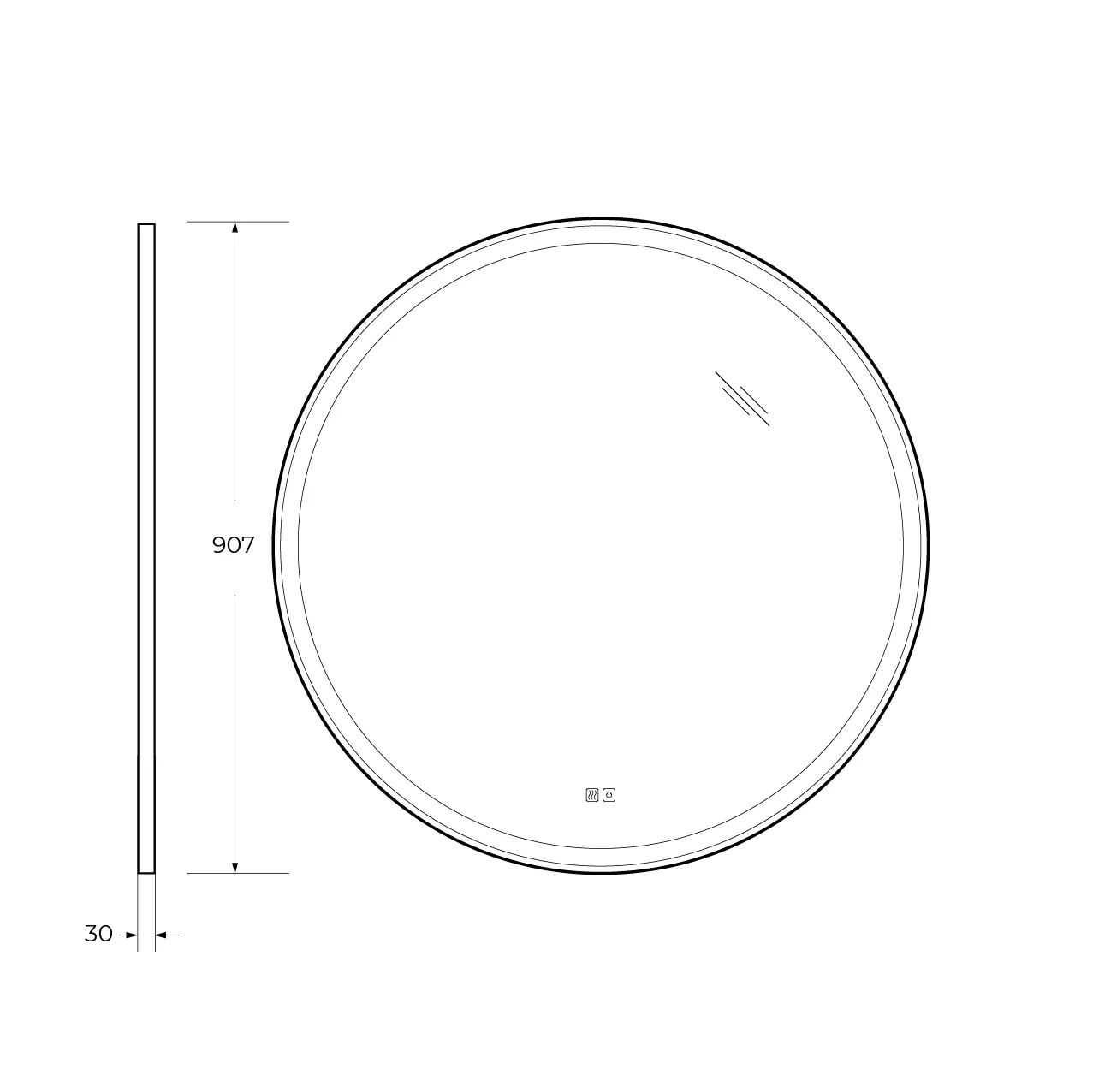 Зеркало 90x3 мм круглое в металлической раме с направленной подсветкой, двойными сенсорным выключателем на прикосновение и функцией подогрева. Корпус изделия выполнен из стали толщиной 2 мм, Установлен нагревательный мат 160*350 мм. Диммер с возможностью регулировки яркости свечения. Укомплектован светодиодной лентой SMD 3528, IP 44, 12V, 6200 К, холодный свет. Крепеж для монтажа прилагается.