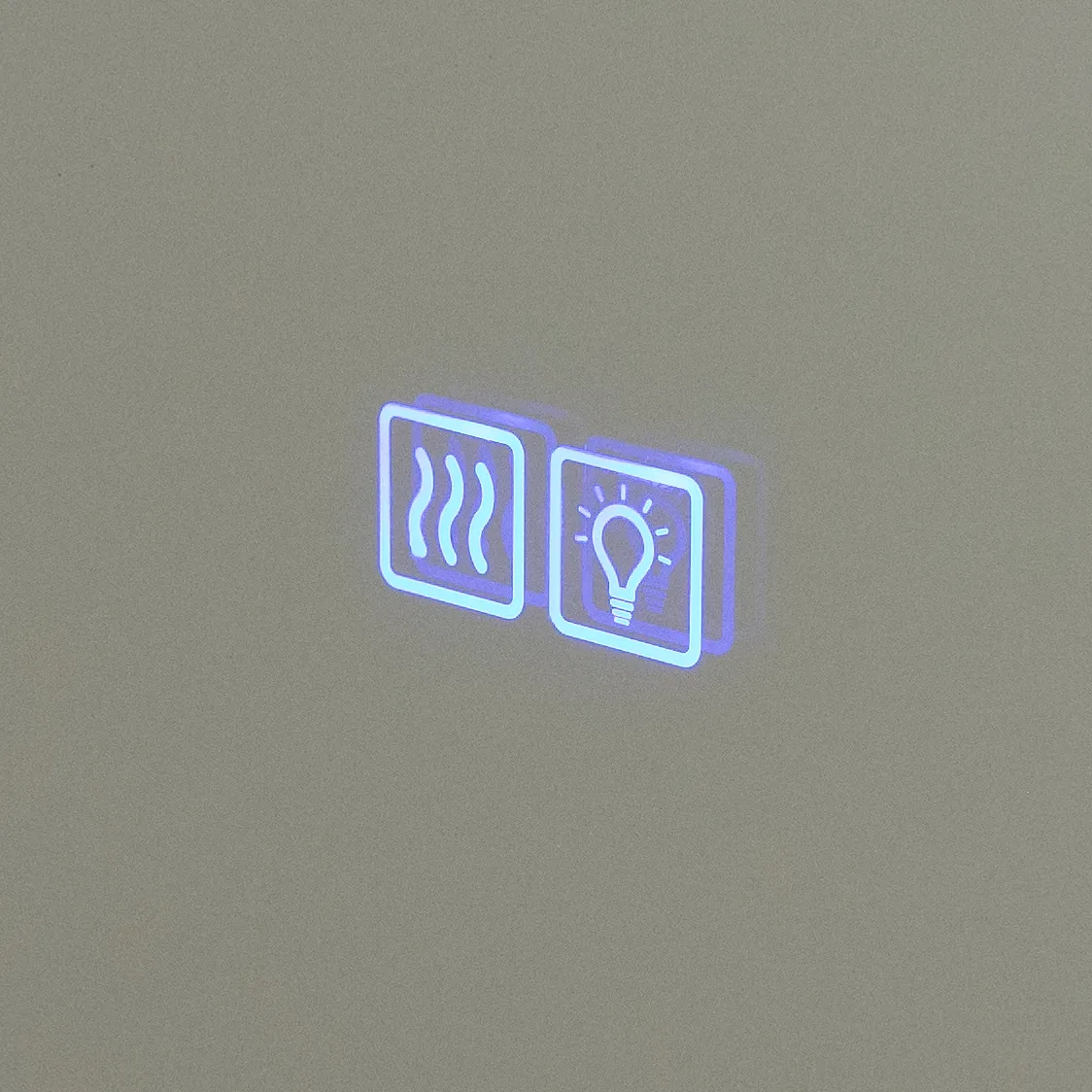 Зеркало со встроенной подсветкой с двойным сенсором управления, подогрева и регулировкой яркости подсветки. Корпус изделия выполнен из влагостойкого МДФ в пленке ПВХ. Зеркальное полотно с фацетом. Светодиодная лента в силиконовой оболочке SMD 2835, 600 Led, 12V, 9,6 Вт на погонный метр, 6000 К, холодный свет.