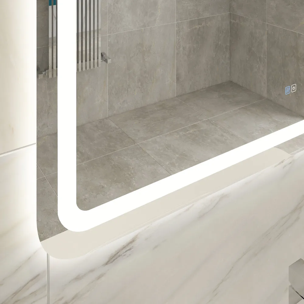 Зеркало 110x70 с контурной и направленной подсветкой, с двойными сенсорным выключателем на прикосновение и функцией подогрева. Корпус изделия выполнен из светорассеивающего пластика. Установлены 2 нагревательных мата 220*350 мм. Диммер с возможностью регулировки яркости свечения. Укомплектован светодиодной лентой SMD 3528, IP 44, 12V, 6200 К, холодный свет. Крепеж для монтажа прилагается.