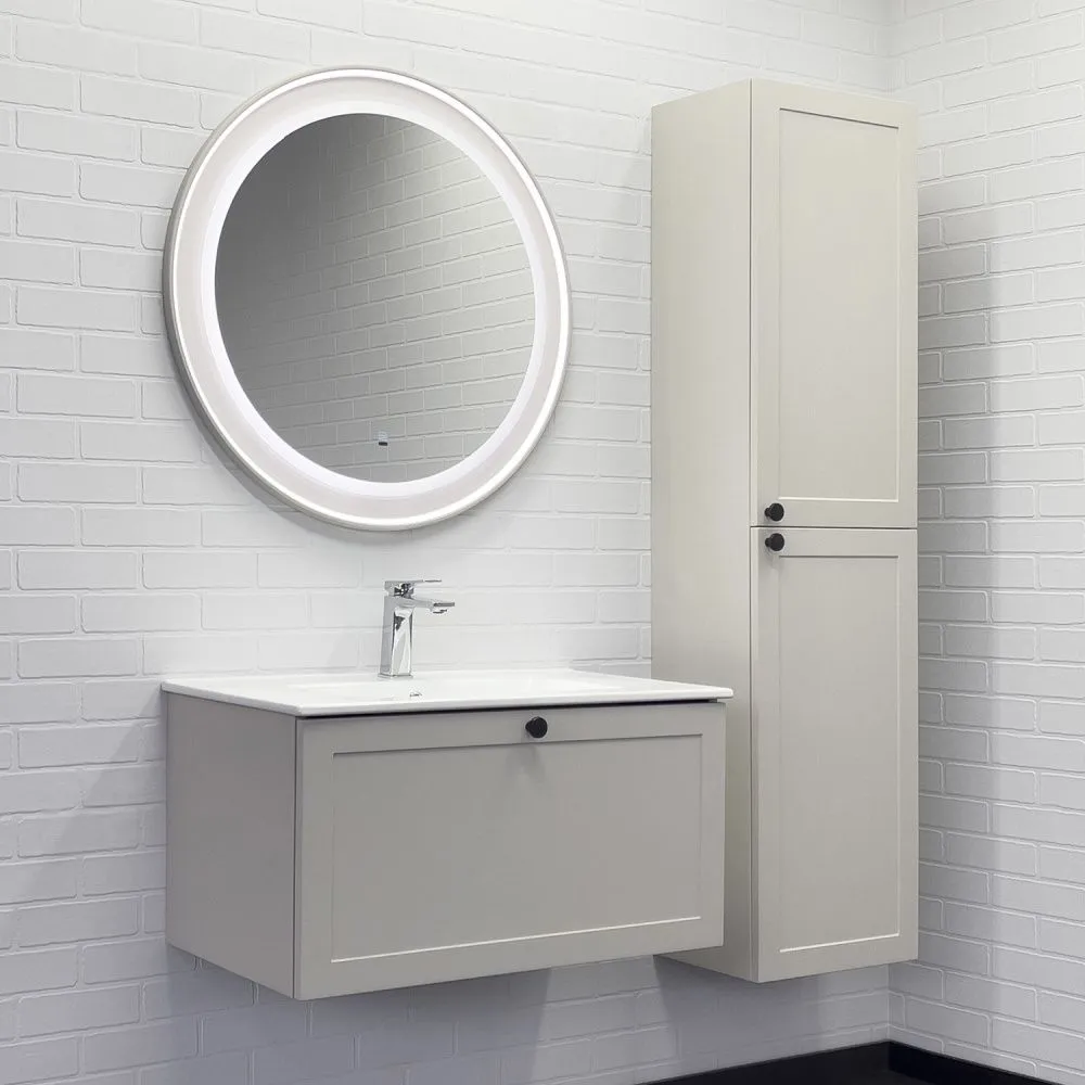 Торговая марка: Comforty Название: Зеркало Артикул: 00-00014146CF Варианты цвета: серый шёлк Материал основы: МДФ Габариты (ШхВхГ): 800*800*30 мм Высококачественное зеркальное полотно с амальгамой на основе серебра. Зеркало оборудовано ореольной и фронтальной Led подсветкой с бесконтактным включателем со встроенной функцией регулировки яркости. Температура подсветки: 6000-6500К холодная. Основа зеркала из МДФ фрезерована кантом по периметру и облицована в матовую пленку цвета "серый шёлк".