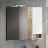 Зеркальное высококачественное полотно с амальгамой на основе серебра. Створка мебельного элемента оснащена петлями с механизмом плавного закрывания. За дверцей одна горизонтальная полка. Дополнительно возможно оборудовать зеркало внешним светильником. Название: Зеркало-шкаф Артикул: 00004142227CF Цвет: дуб Сонома Габариты (ШхВхГ): 900*800*150 мм Инструкция для мебели для ванных комнат COMFORTY