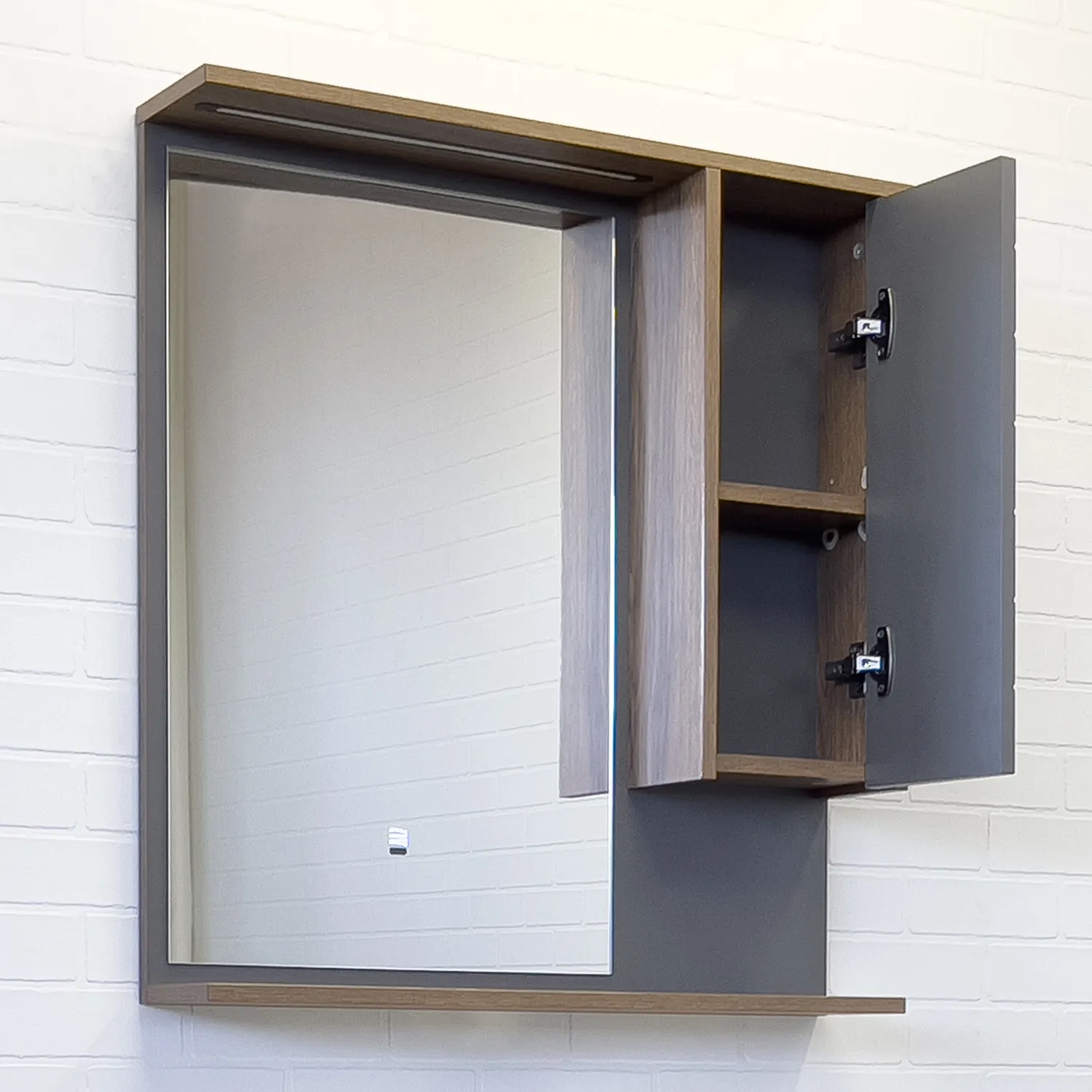 Зеркало Comforty Кемер 75x80 00-00014147CF правая с подсветкой с полочкой
