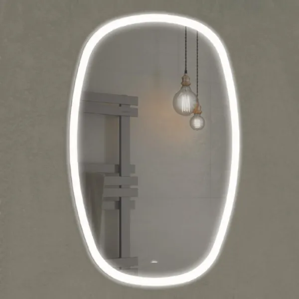 Зеркало оснащено встроенным светодиодным светильником размещенным по периметру и бесконтактным сенсором включения подсветки. Изготовлено из зеркального полотна толщиной 4 мм производства ведущего европейского производителя зеркал AGC. Название: Зеркало Артикул: 00-00005260CF Габариты (ШхВхГ): 500*800*30 мм Температура подсветки: 6000К холодная Овальное зеркало для ванной комнаты с проводом длиной 1,3 м и вилкой подключения в сеть 220 В Зеркало поставляется в комплекте с настенным крепежом. Инструкция для мебели для ванных комнат COMFORTY
