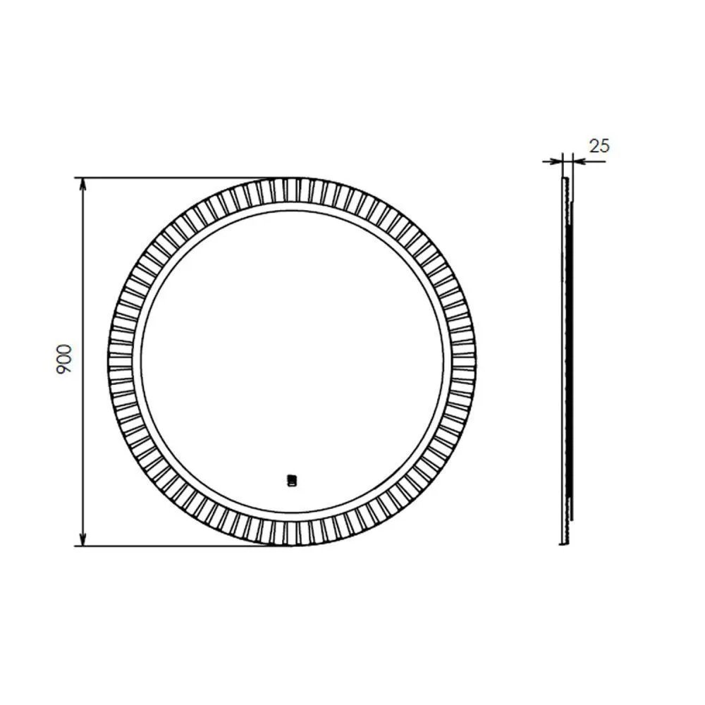 Торговая марка: Comforty Название: Зеркало Артикул: 00-00014159CF Варианты цвета: серый шелк Материал основы: МДФ Габариты (ШхВхГ): 900*900*25 мм Высококачественное зеркальное полотно с амальгамой на основе серебра. Зеркало оборудовано ореольной и фронтальной Led подсветкой с бесконтактным включателем со встроенной функцией регулировки яркости. Температура подсветки: 6000-6500К холодная. Основа зеркала из МДФ фрезерована радиальным узором в виде лучей и облицована пленкой цвета серый шёлк.