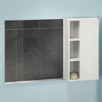 Зеркало-шкаф с одной створкой и пространствами для открытого хранения. Створка оснащена системой плавного закрывания. За створкой, одна горизонтальная полка. Высококачественное зеркальное полотно с амальгамой на основе серебра. Дополнительно оснащается светильником. Фасад выкрашен белой глянцевой эмалью. Мебельный элемент из влагостойкого ЛДСП. Название: Зеркало-шкаф Артикул: 00004136261CF Цвет: Белый глянец Габариты (ШхВхГ): 1180*800*160 мм Инструкция для мебели для ванных комнат COMFORTY