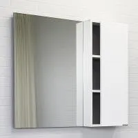 Зеркало-шкаф с одной створкой и пространствами для открытого хранения. Створка оснащена системой плавного закрывания. Две горизонтальные полки продолжаются и за створкой. Высококачественное зеркальное полотно с амальгамой на основе серебра. Дополнительно оснащается светильником. Фасад выкрашен белой глянцевой эмалью. Мебельный элемент из влагостойкого ЛДСП. Название: Зеркало-шкаф Артикул: 00004137130CF Цвет: Белый глянец Габариты (ШхВхГ): 880*800*160 мм Зеркало-шкаф универсально, может быть подвешено как с правым, так и с левым расположением мебельного элемента. Инструкция для мебели для ванных комнат COMFORTY