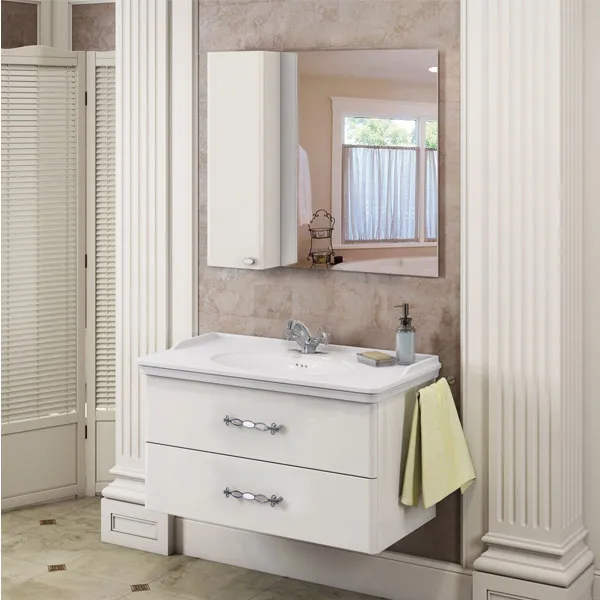 Подвесное зеркало-шкаф оснащено шкафчиком. Створка оборудована петлями с механизмом плавного закрывания. Высококачественное зеркальное полотно с амальгамой на основе серебра. Фасад и боковые стенки покрыты белой глянцевой эмалью. За дверцей две горизонтальные полки. Зеркало-шкаф универсально - может быть подвешено в правом и левом исполнении. Название: Шкаф-зеркало Артикул: 00004139023CF Цвет: белый глянец Габариты (ШхВхГ): 1000*800*170 мм Инструкция для мебели для ванных комнат COMFORTY