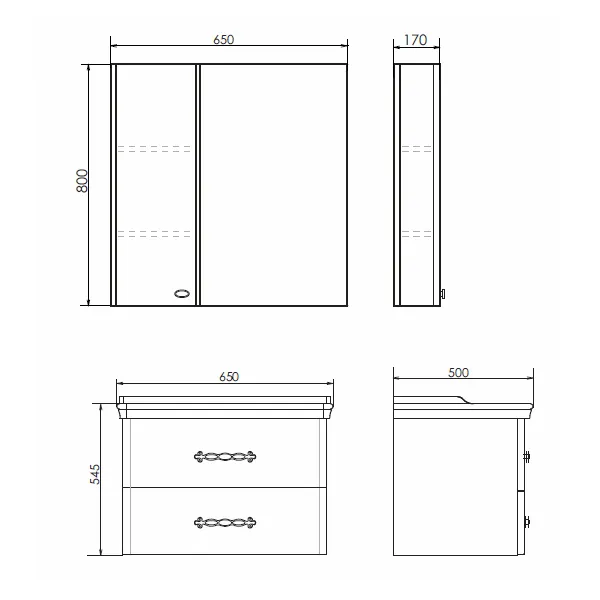 Подвесное зеркало-шкаф оснащено шкафчиком. Створка оборудована петлями с механизмом плавного закрывания. Высококачественное зеркальное полотно с амальгамой на основе серебра. Фасад и боковые стенки покрыты белой глянцевой эмалью. За дверцей две горизонтальные полки. Зеркало-шкаф универсально - может быть подвешено в правом и левом исполнении. Название: Шкаф-зеркало Артикул: 00004148728CF Цвет: белый глянец Габариты (ШхВхГ): 650*800*170 мм Инструкция для мебели для ванных комнат COMFORTY