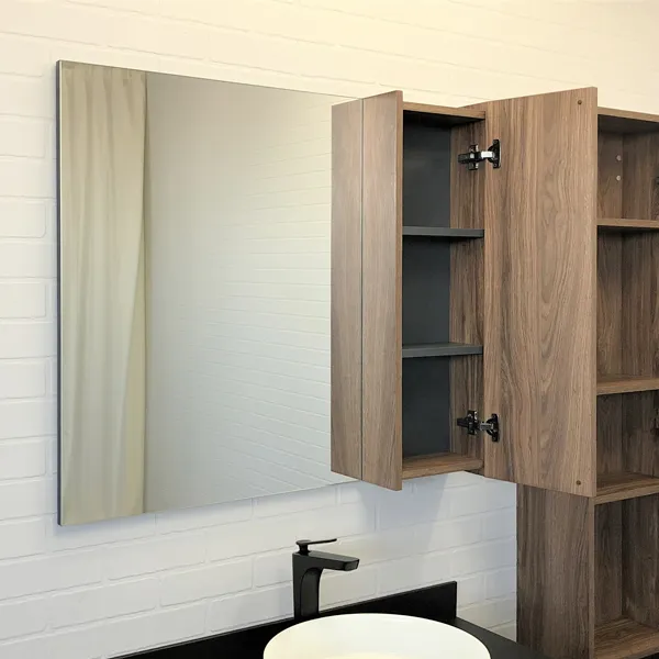 Створка оснащена системой плавного закрывания. Высококачественное зеркальное полотно с амальгамой на основе серебра. Фасад и корпус из влагостойкого ЛДСП Дуб темно-коричневый. За створкой две горизонтальные полки. Зеркало универсально, может быть подвешено в правом или левом варианте путем переворачивания. Название: Зеркало-шкаф Артикул: 00-00009232CF Цвет: дуб темно-коричневый Габариты (ШхВхГ): 900*800*150 мм Инструкция для мебели для ванных комнат COMFORTY