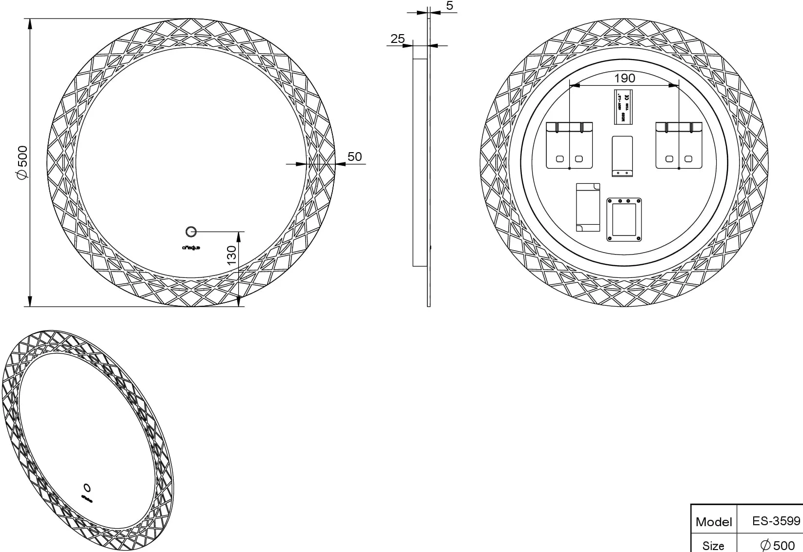 Зеркало Esbano 50x50 ESMI3599 с подсветкой