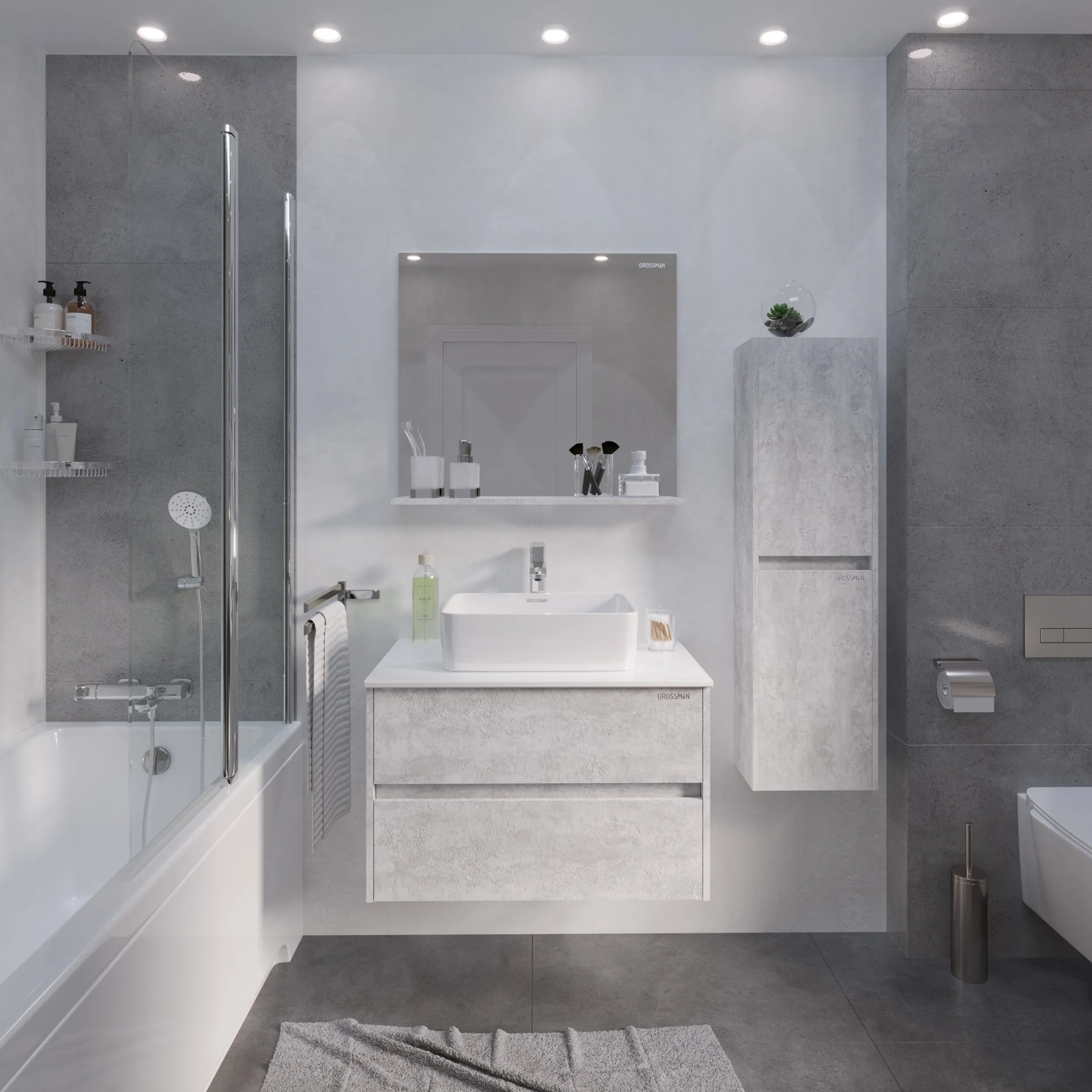 Зеркало Эдванс 80 см с полкой отражает современные тенденции в дизайне мебели для ванных комнат: и создано для тех, кто ценит современный лаконичный дизайн, холодный эффект светлого цемента. Открытая полка обеспечит быстрый доступ к аксессуарам. Зеркало изготовлено из влагостойкого ЛДСП, устойчивое к механическим воздействиям, перепадам температур и высокой влажности. Подвесы для крепления зеркала - в комплекте.