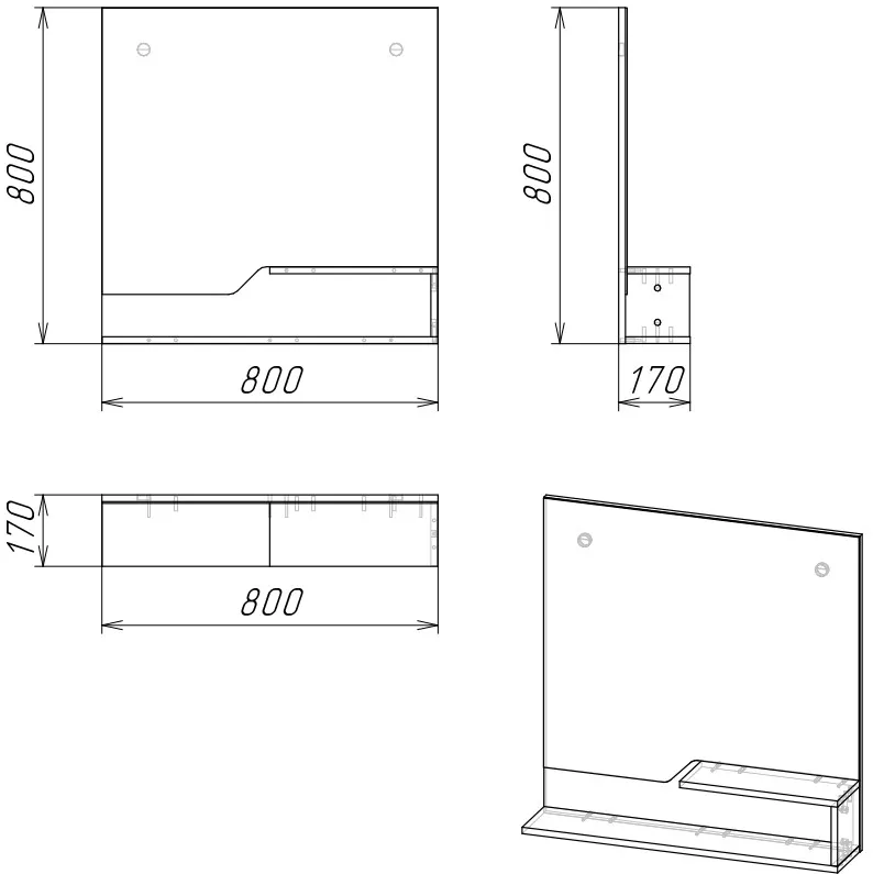 | Тип зеркала | Зеркало с полкой |