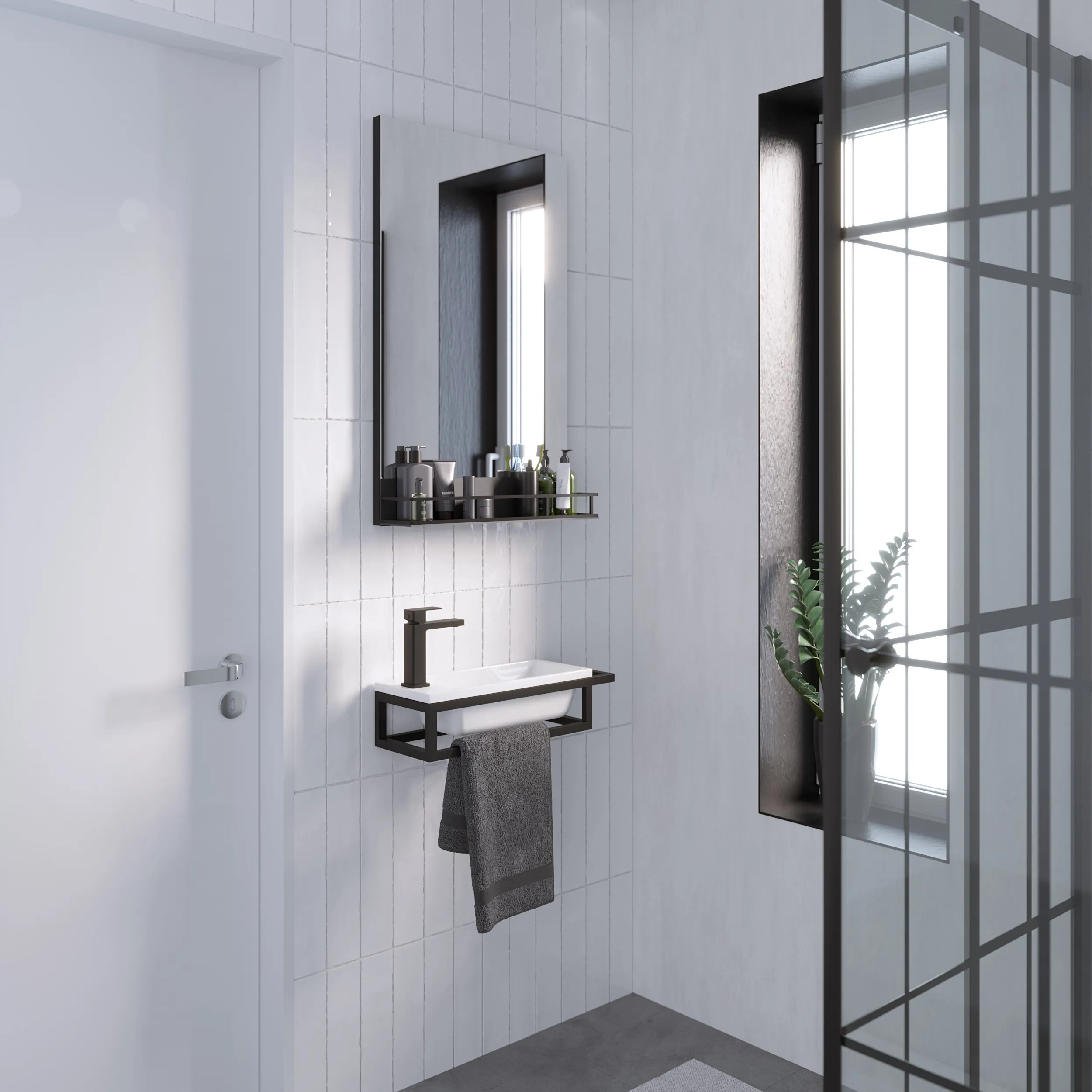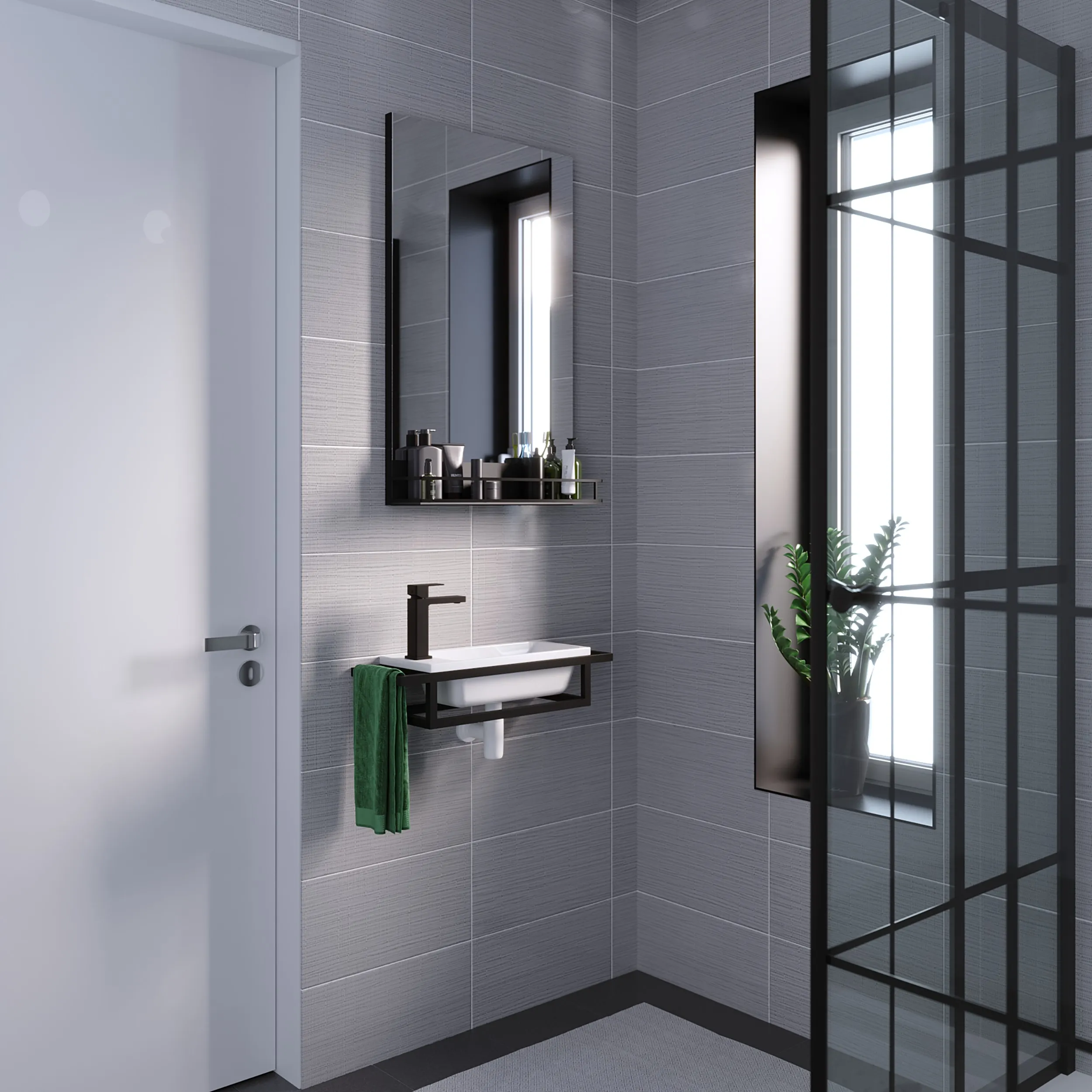 Серия мебели Метрис - идеальное решение для небольших помещений. Отлично впишется в гостевой ванной комнате в стиле лофт. Вертикальная установка зеркала зрительно увеличивает высоту потолка и визуально расширяет пространство. Зеркало дополнено полкой для размещения косметики, гигиенических принадлежностей. Подвесы для крепления зеркала - в комплекте.
