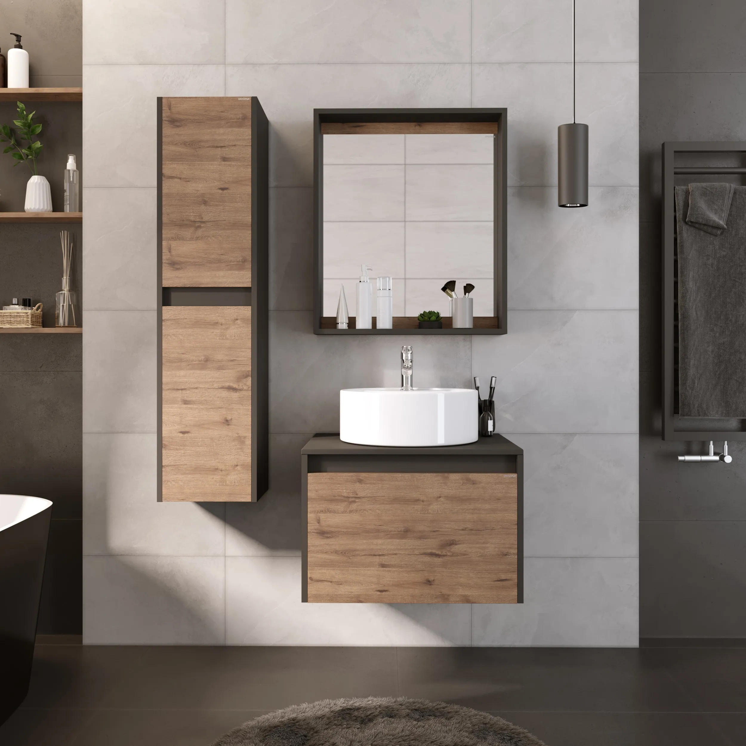 Зеркало Смарт-60 см выполнено в стле модерн и предлагает прямые линии и простые пропорции. Корпус выполнен из влагостойкого ЛДСП в цвете графит. Подвесы для крепления шкафа - в комплекте.