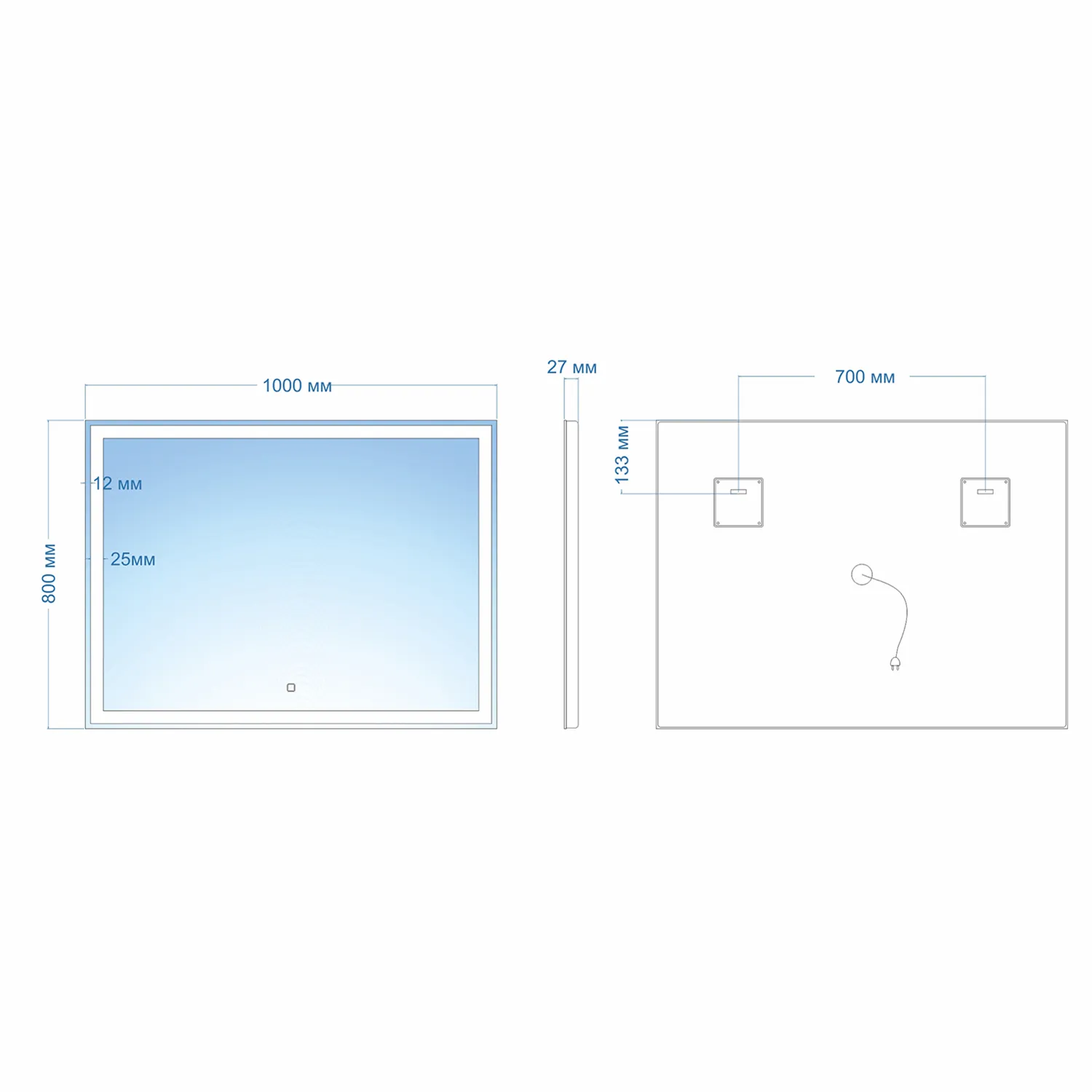 Настенное зеркало для ванной Mixline с подсветкой 100 х 80 см изготовлено из зеркального полотна толщиной 4 мм. Оснащено сенсорным выключателем и диммером, который при удержании пальца на сенсоре позволяет менять интенсивность освещения. Свет белый 6000К. Все электрические компоненты размещены внутри корпуса из Abs-пластика, который защищает от влаги и механических повреждений. В качестве элемента подсветки используется светодиодная лента, которая обеспечивает яркое свечение по периметру зеркала. Срок службы диодов -100 000 часов. Зеркало влагостойкое и защищено от попадания случайных брызг и капель воды. Комплектация: крепеж, инструкция.
