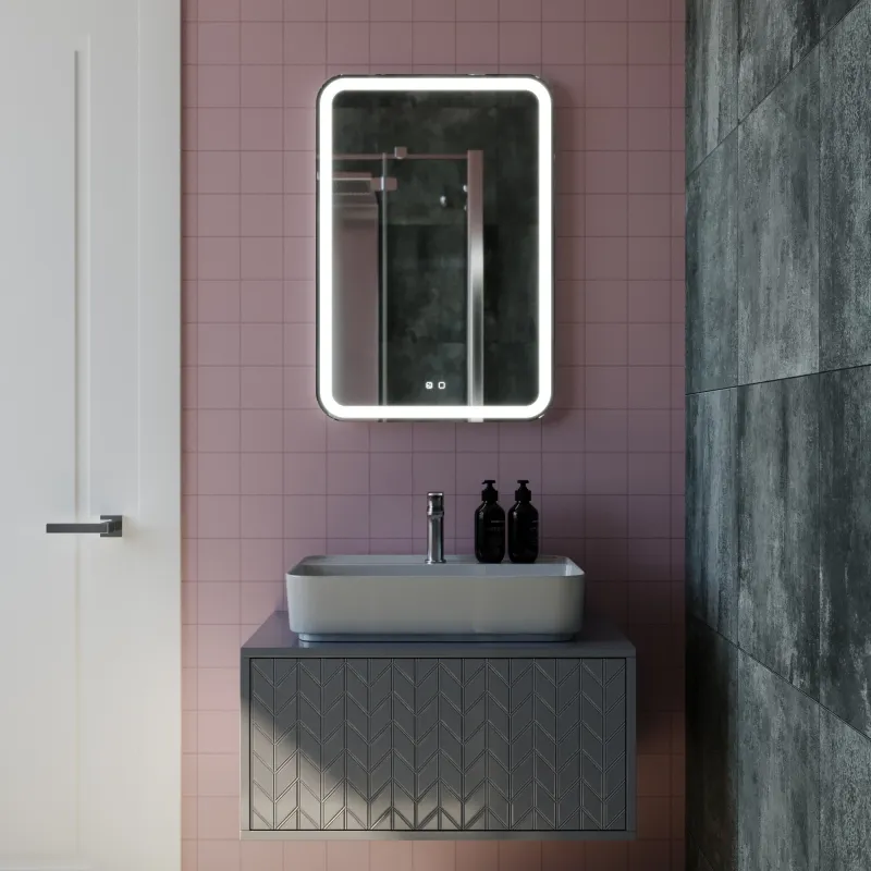 Зеркало мягкой прямоугольной формы, с LED-подсветкой, обеспечивающей направленное, мягкое освещение лица без теней и бликов. Управляется данное зеркало как сенсором, так и голосом. Достаточно сказать зеркало: "Привет, зеркало!", и оно выполнит несколько запрограммированных команд. Таких как: включение/выключение подсветики, регулировка яркости и включение/выключение функции антипар.