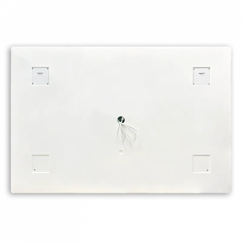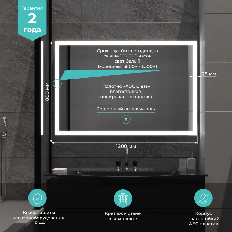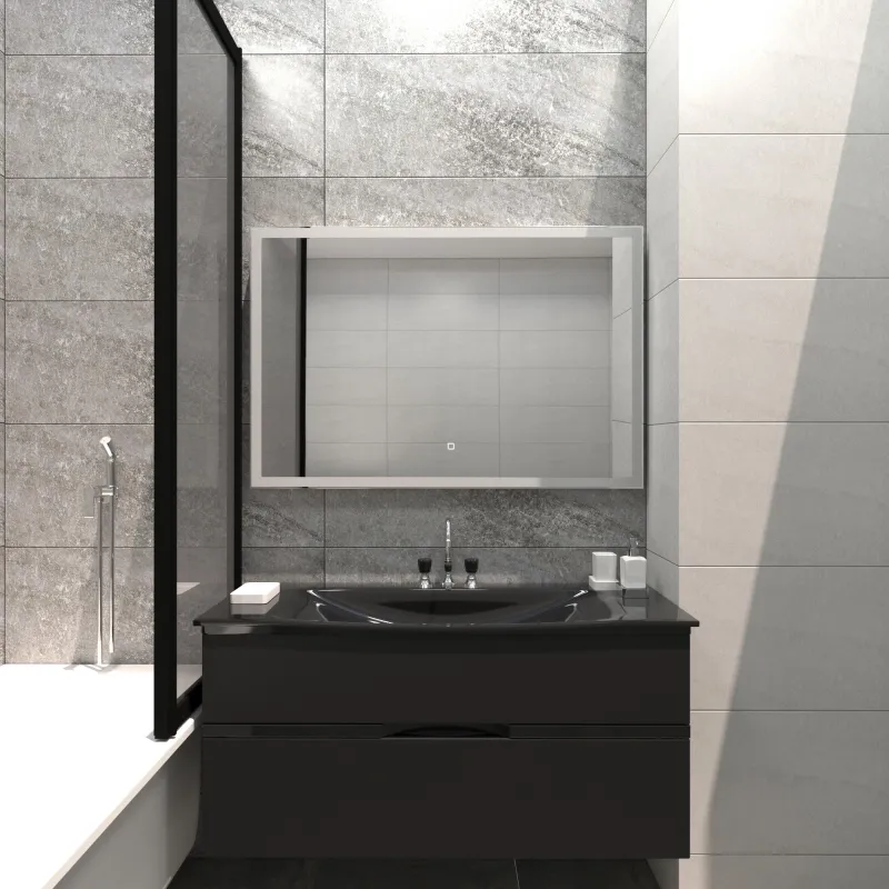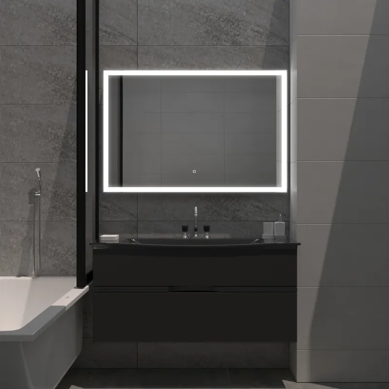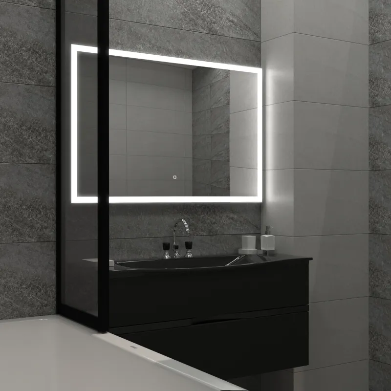 Зеркало с фронтальной LED-подсветкой и сенсороным выключателем. Световая рама расположена не по краям периметра, а несколько отступает от него. Мягкое свечение, регулируемое сенсорным выключателем с функцией диммера, смягчает графичность рисунка и всей формы и создаёт завораживающую, расслабляющую атмосферу. Благодаря этой находке довольно строгий, минималистичный дизайн не мешает зеркалу быть яркой акцентной деталью любого пространства: от строгой, упорядоченной классики и сдержанного минимализма до свободолюбивых эклектичных интерьеров.