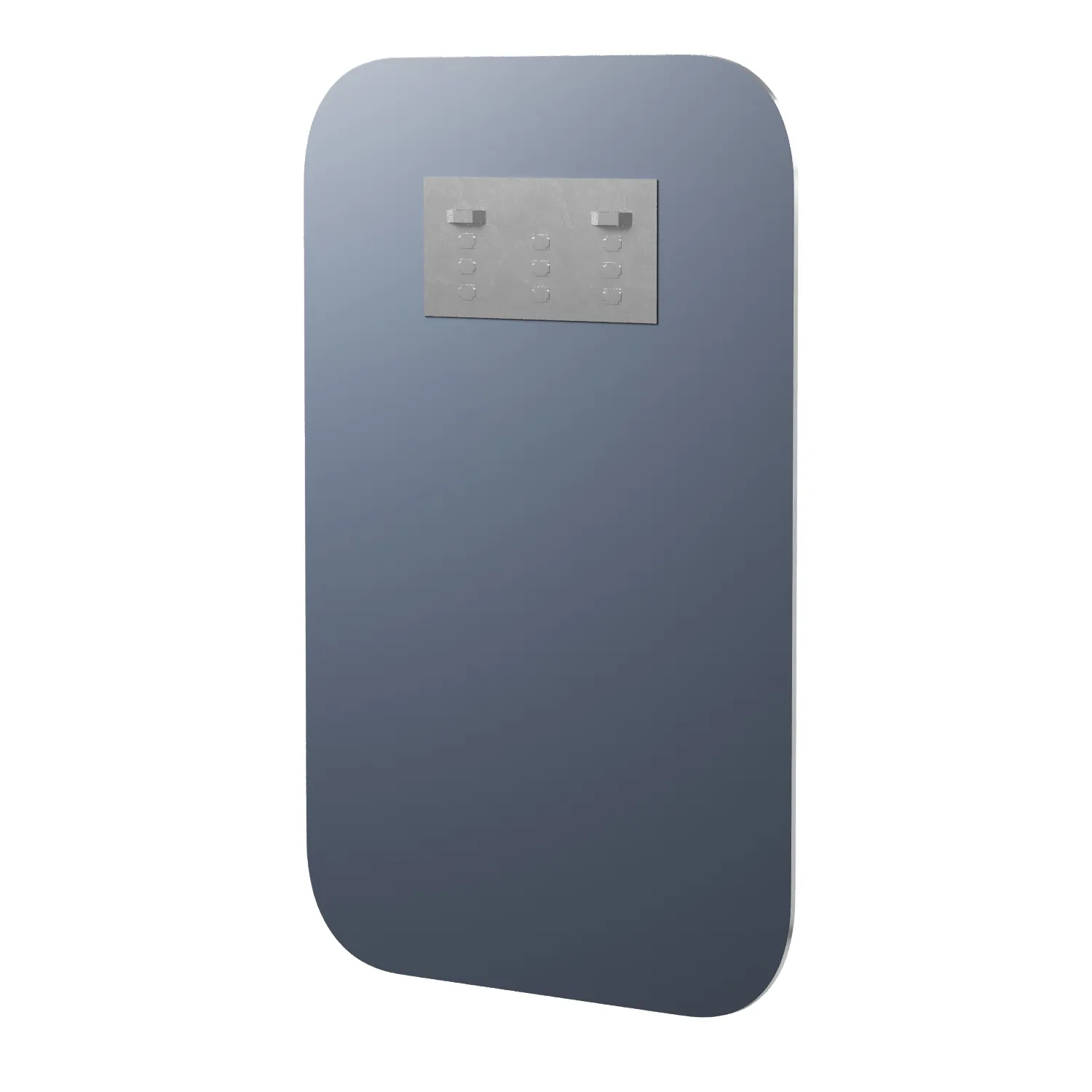 Прямоугольное зеркало с мягкими радиусными углами и пескоструйной окантовкой вровень с краем: сдержанный стиль и аккуратный дизайн.