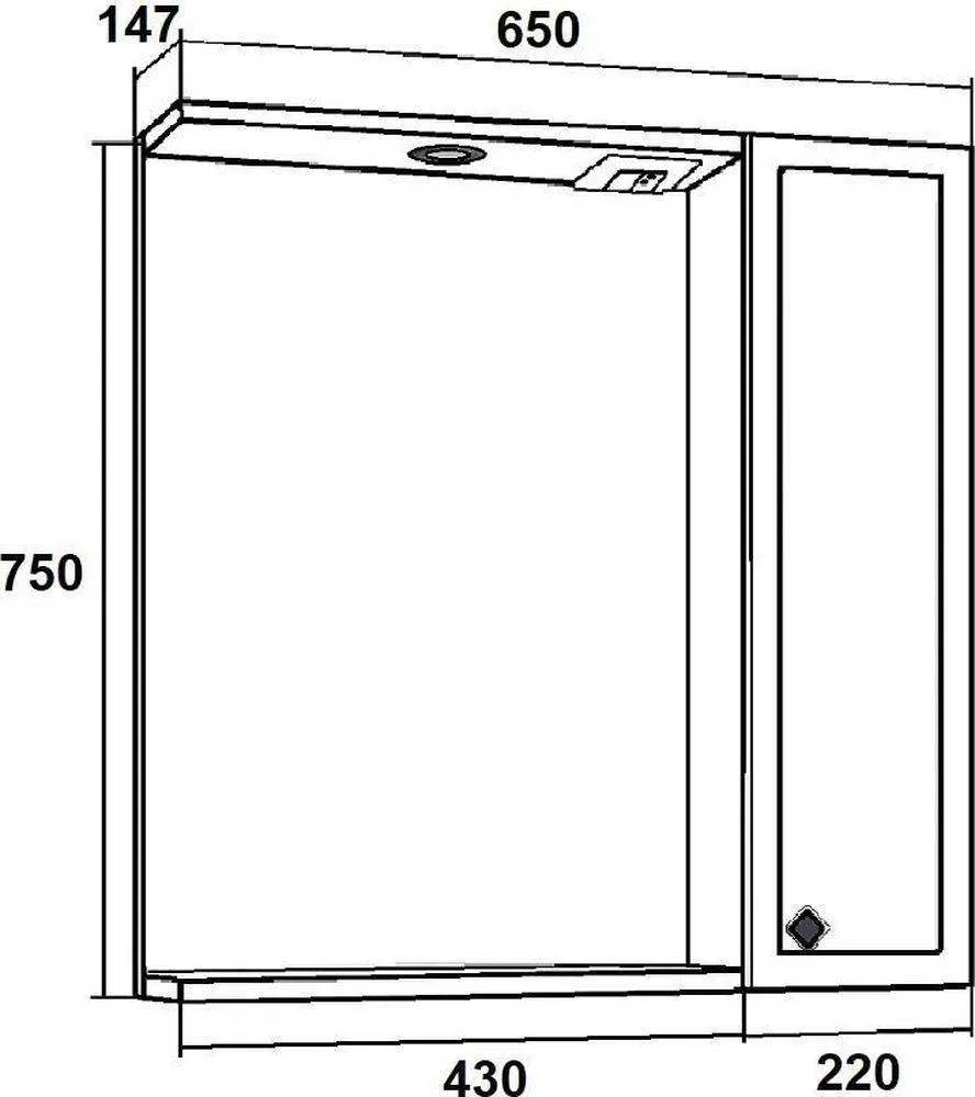 Зеркало Runo Римини 65x75 00-00001277 правое с полочкой и подсветкой