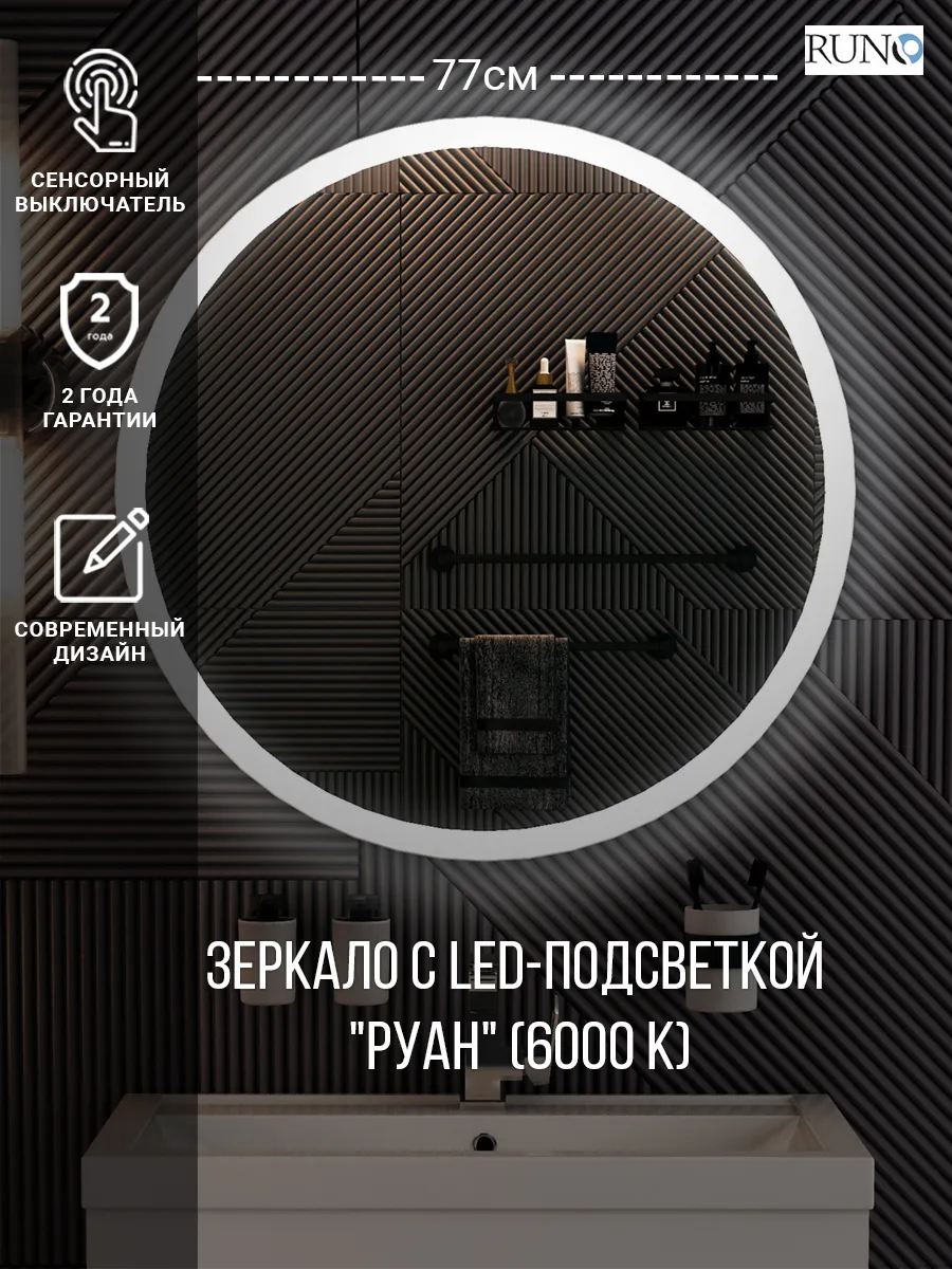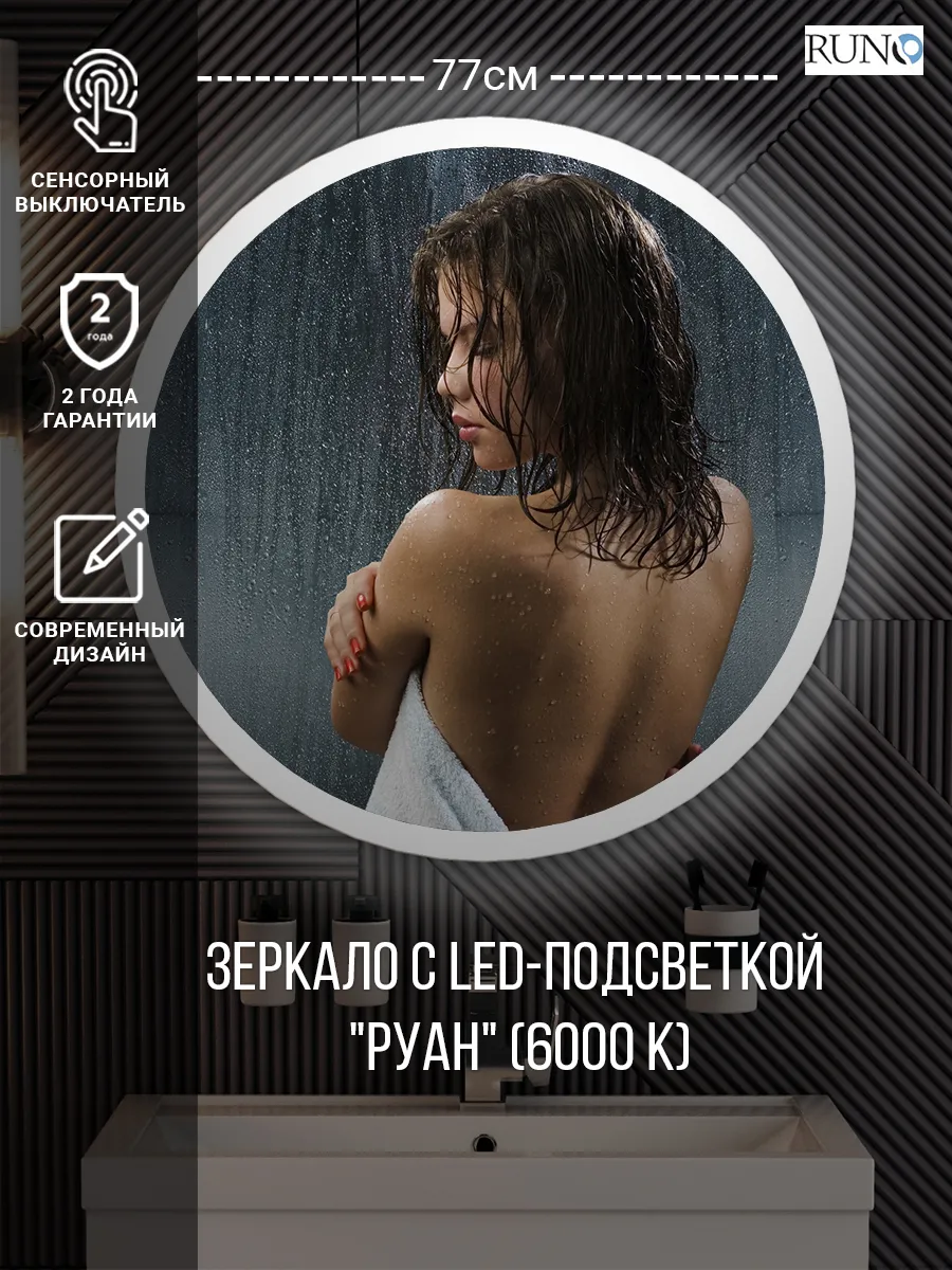 Зеркало Runo Руан 80x80 4660124928756 с подсветкой