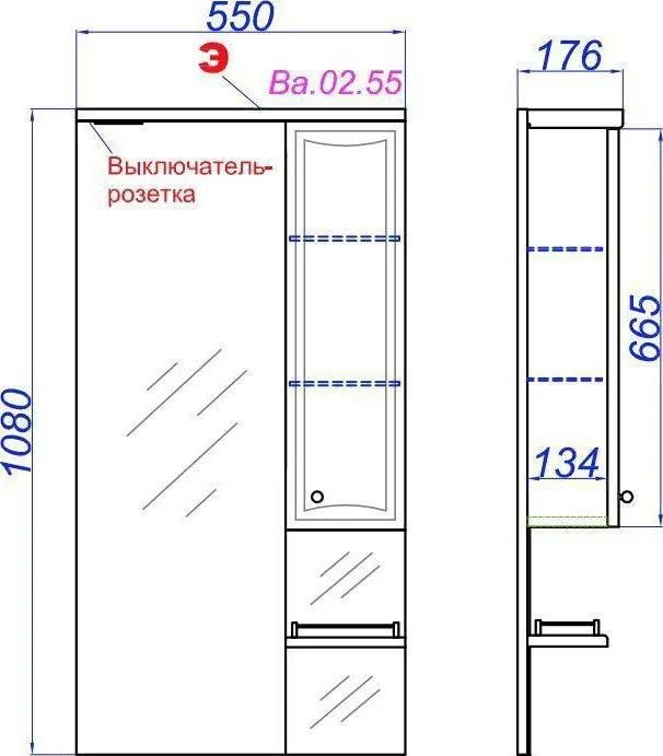 | Тип зеркала | Зеркало с полкой и шкафом |