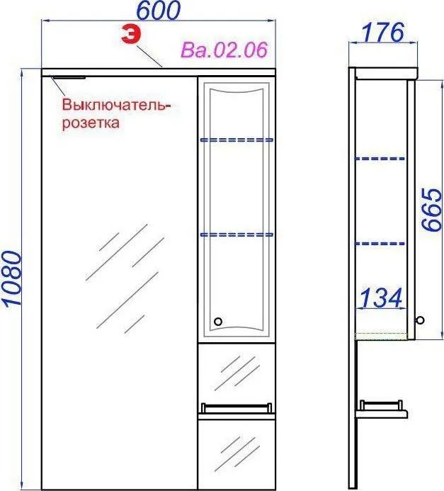 | Тип зеркала | Зеркало с полкой и шкафом |