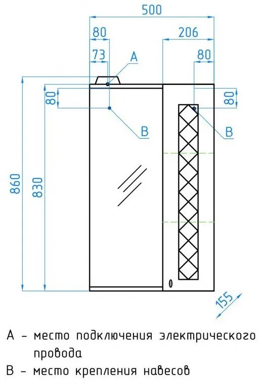 | Расположение полок/шкафчиков | Полки снизу, Шкафчик справа |