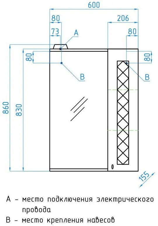 | Расположение полок/шкафчиков | Полки снизу, Шкафчик справа |