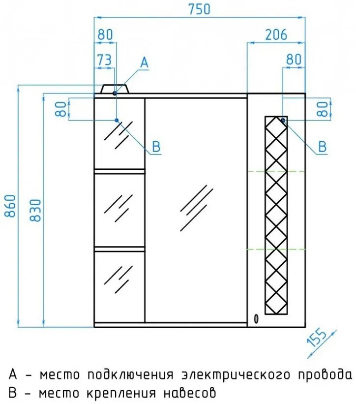Расположение полок/шкафчиков | Полки слева, Полки снизу, Шкафчик справа |