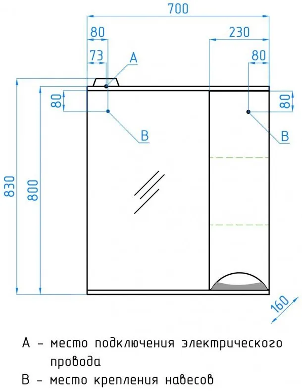 | Расположение полок/шкафчиков | Полки снизу, Шкафчик справа |